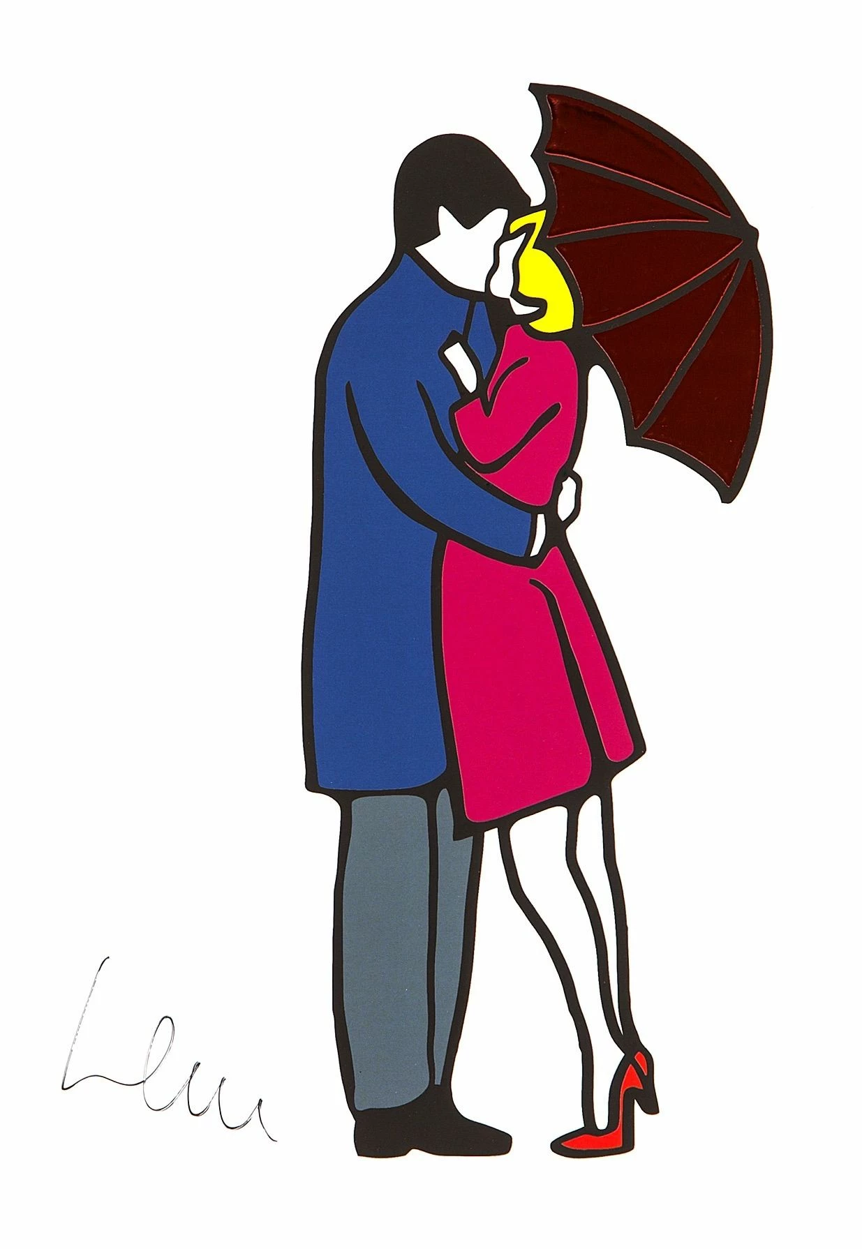 Marco Lodola – Amanti sotto l’ombrello – serigrafia firmata su carta in edizione limitata del 2019.