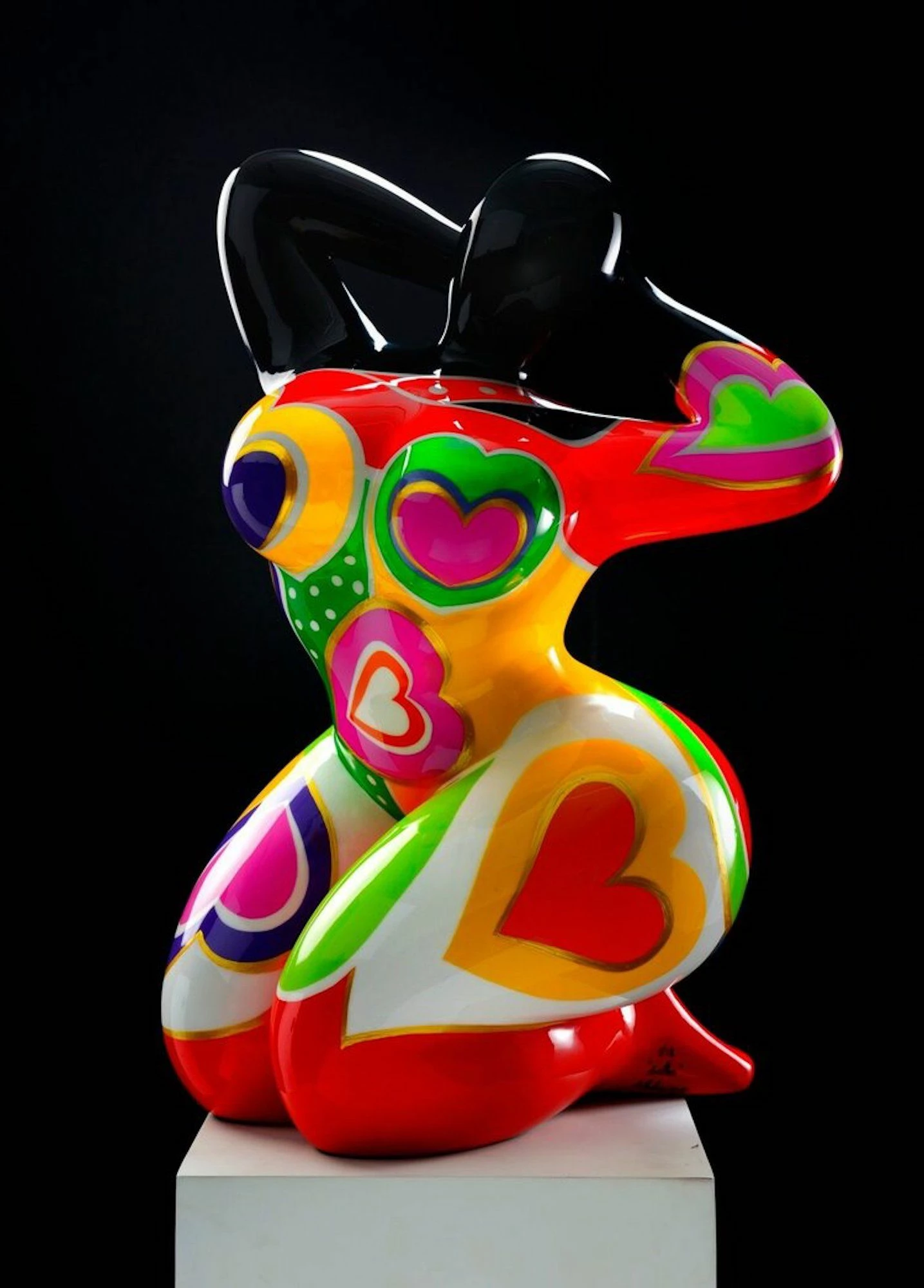 L’artista, nella sua produzione artistica, tratta sculture di svariate dimensioni, con linee sinuose e dai colori sgargianti. Queste sculture dalle forme dolci, lisce e colorate, hanno il compito di infondere gioia ed elevare l’umore di tutti coloro che le osservano.