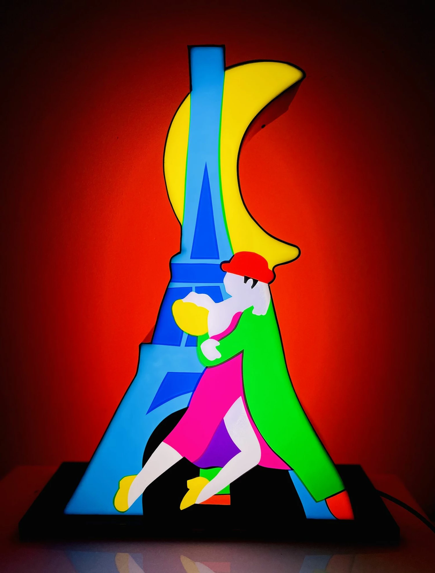L’opera unica di Marco Lodola Ballerini sotto la Torre Eiffel è una scultura a parete in neon e perspex.
