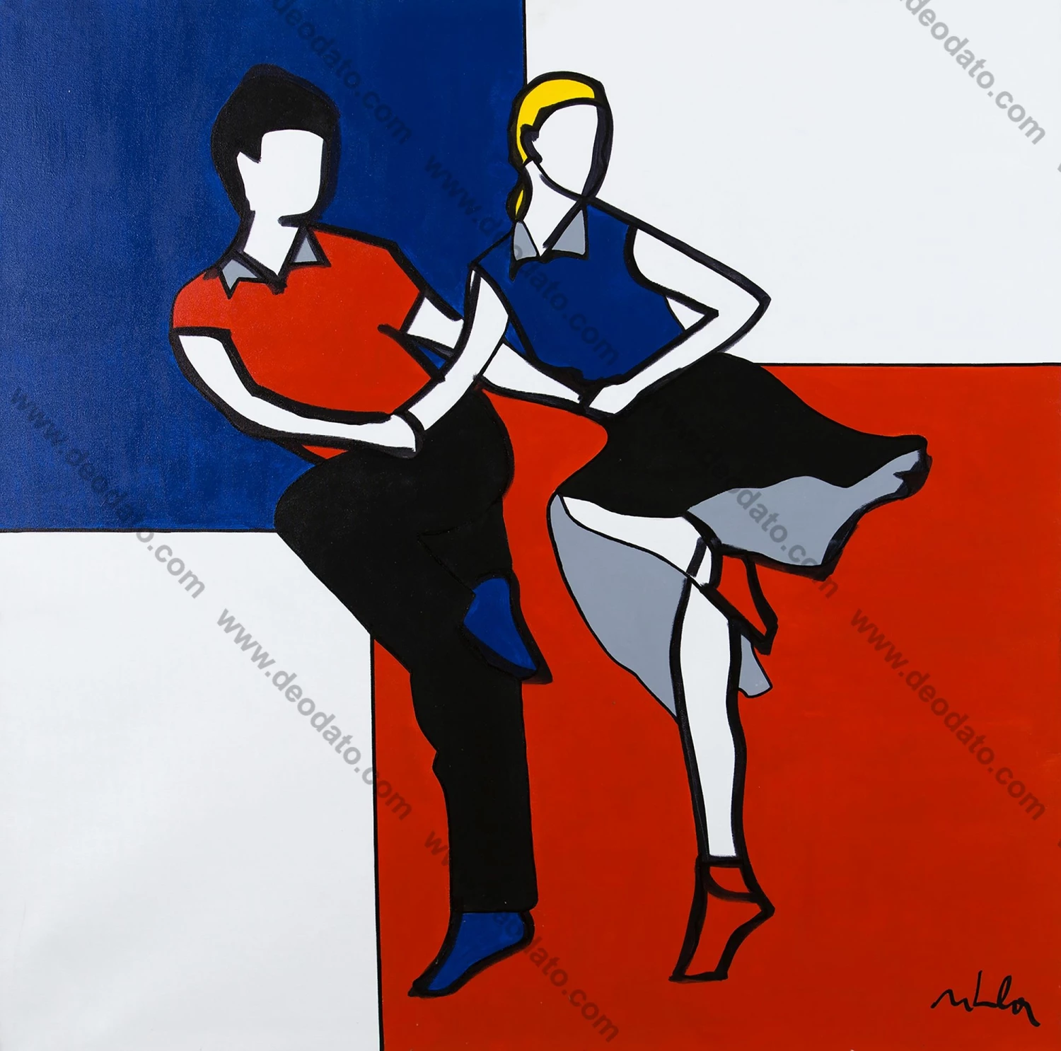 Quest’opera si ispira al Boogie Woogie, tipo di danza diffusosi attorno agli anni ’30 che nasceva sulle note di un blues veloce e ritmato. I due ballerini tenendosi per mano esprimono dinamicità e leggerezza. Il momento del ballo è sospeso e si staglia su uno sfondo geometrico a colori sgargianti, tra cui il blu, il bianco e il rosso.