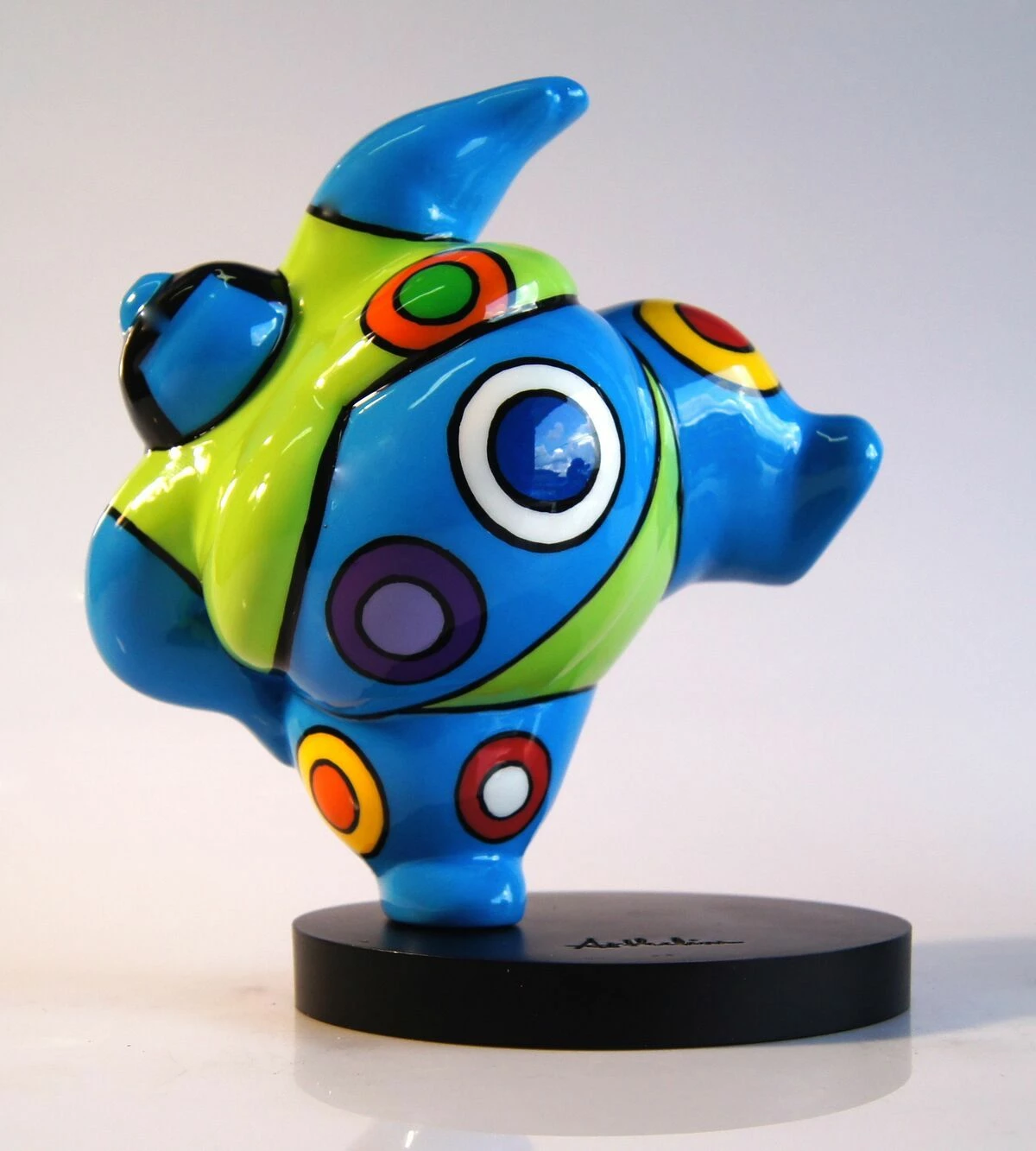 L’artista, nella sua produzione artistica, tratta sculture di svariate dimensioni, con linee sinuose e dai colori sgargianti. Queste sculture dalle forme dolci, lisce e colorate, hanno il compito di infondere gioia ed elevare l’umore di tutti coloro che le osservano.
