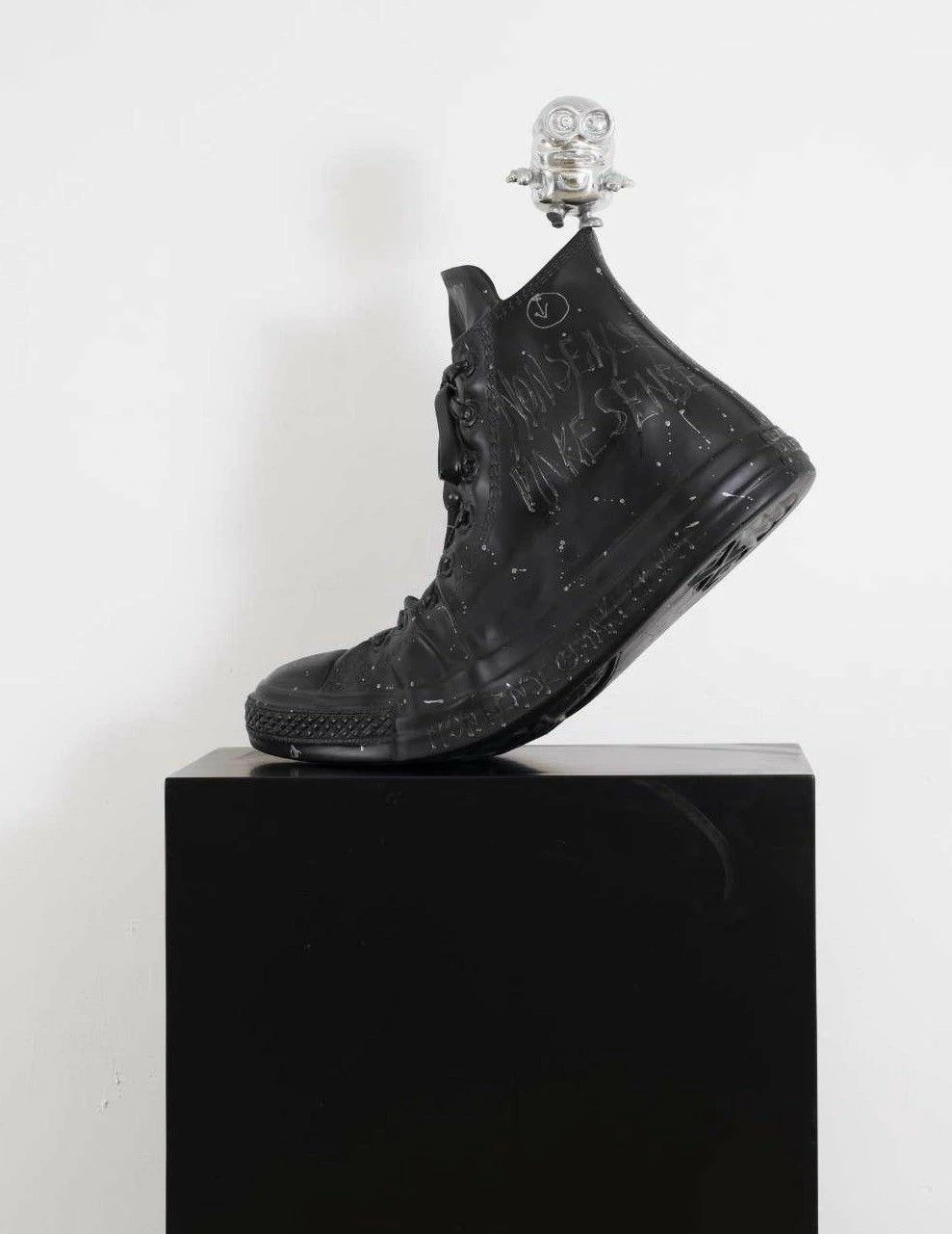 Soggetto dell’opera è una scarpa Converse, brand esploso nella moda degli anni Sessanta attraverso il mondo della musica e successivamente diffusosi anche tra il pubblico di massa. Sopra la scarpa, Accardi pone un Minion, personaggio celebre del film d’animazione Cattivissimo Me.
