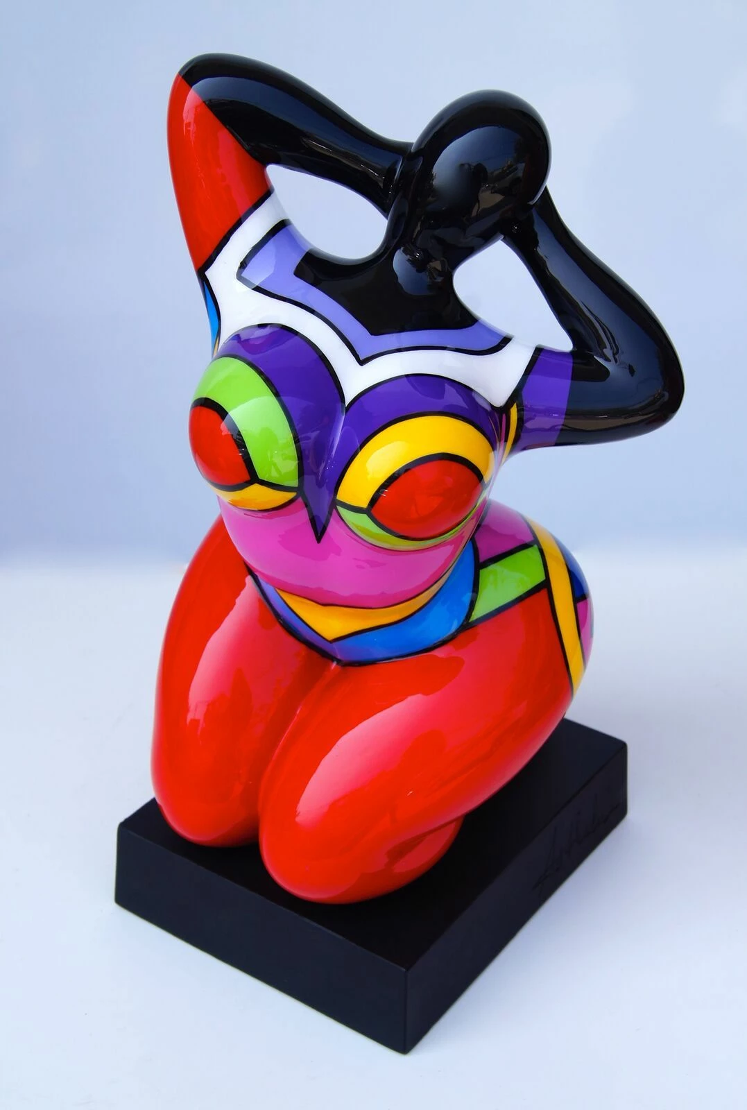 Le sculture di Arnaud Nazare-Aga hanno come scopo quello di portare felicità a chi le guarda. La scelta dei soggetti, le forme, i colori e i materiali sono pensati per creare un’armonia tra lo spettatore e l’opera. Questa scultura fa parte della collezione Venus, è fatta di polvere di marmo, fibra di vetro e resina, è dipinta a mano e rivestita con strati multipli di lacca. Tutte le Venus Taglia S sono firmate e numerate in originale dagli artisti con tiratura limitata da 1/99 a 99/99.
