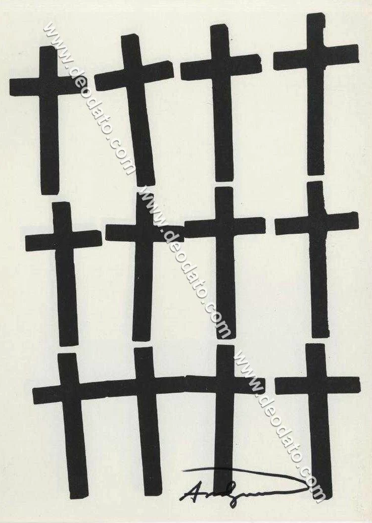 L’opera raffigura dodici croci bianche disposte in tre file su uno sfondo nero. La litografia venne emessa per promuovere la mostra “Andy Warhol: Guns, Knives, Crosses” presso la Galeria Fernando Vijande, Madrid.