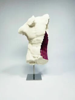 Il soggetto dell’opera riprende il mezzobusto di una scultura fortemente ispirata ai canoni antichi. Riprendere le forme del passato è una caratteristica tipica dell’artista Daniele Fortuna, il quale non riprende semplicemente la scultura antica ma la trasforma e la catapulta nella cultura Pop moderna attraverso l’uso dei colori vivaci.