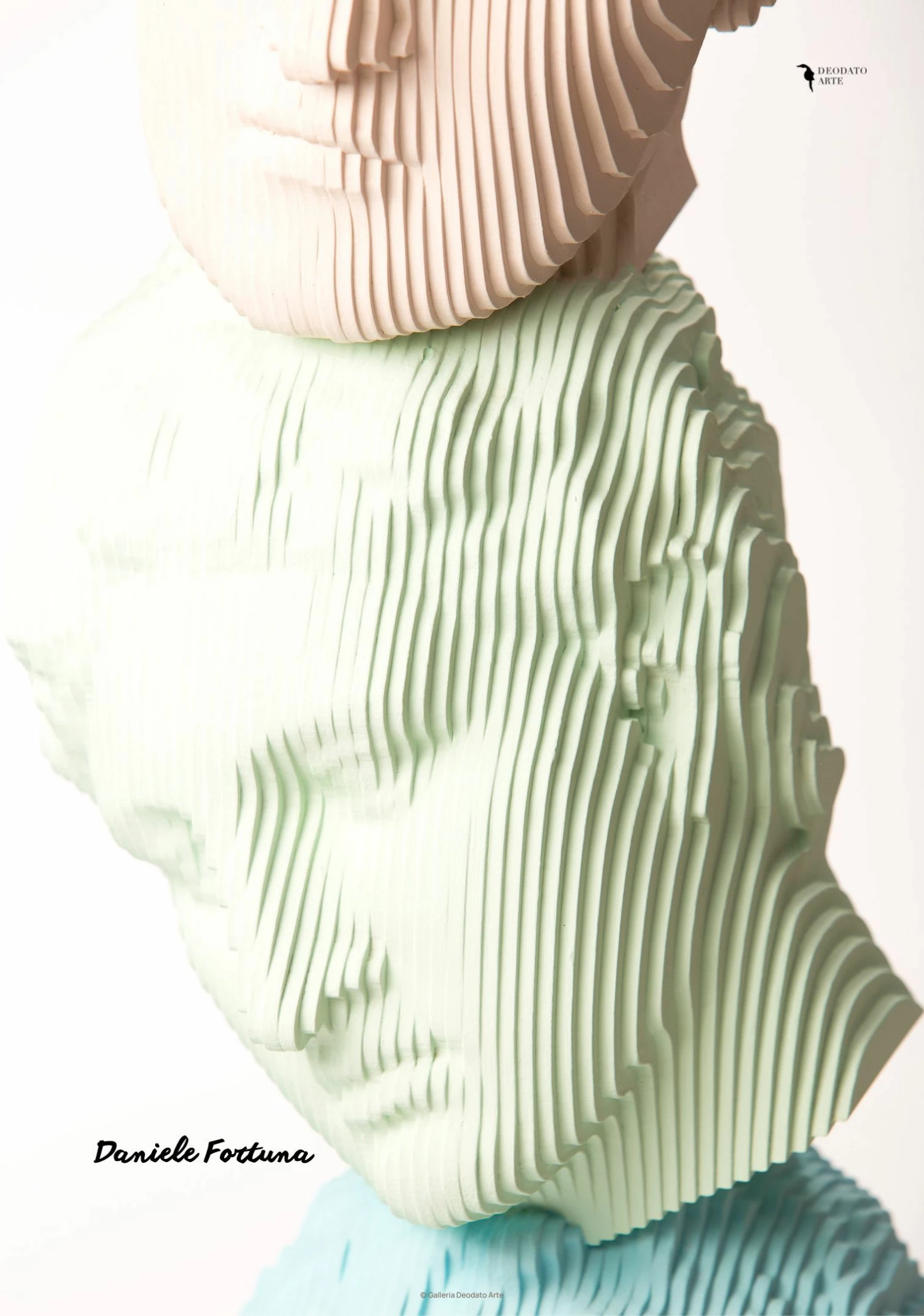 La produzione artistica di Daniele Fortuna fonde il passato e presente all’interno della stessa opera; infatti, se il soggetto riprende la classicità e l’antichità, i colori accesi riportano la scultura nella contemporaneità.