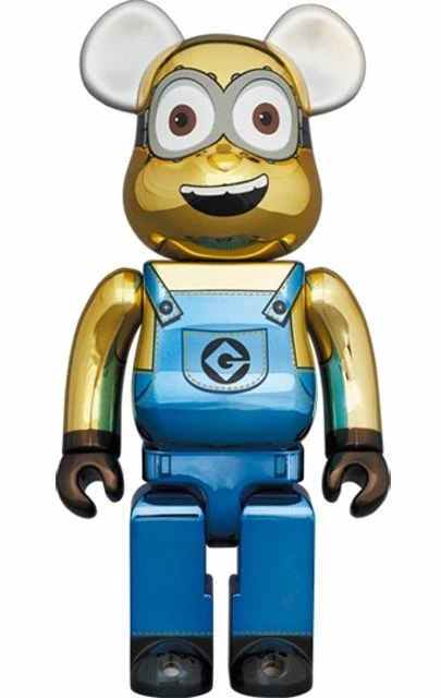 Bearbrick, Dave Chrome, 1.000% raffigura Dave, uno dei Minions i fedeli aiutanti di Gru nel lungometraggio d’animazione Cattivissimo me. Nonostante l’iconica forma dei personaggi del lungometraggio, Bearbrick crea un art toy mantenendo il classico stile dell’orso antropomorfo.