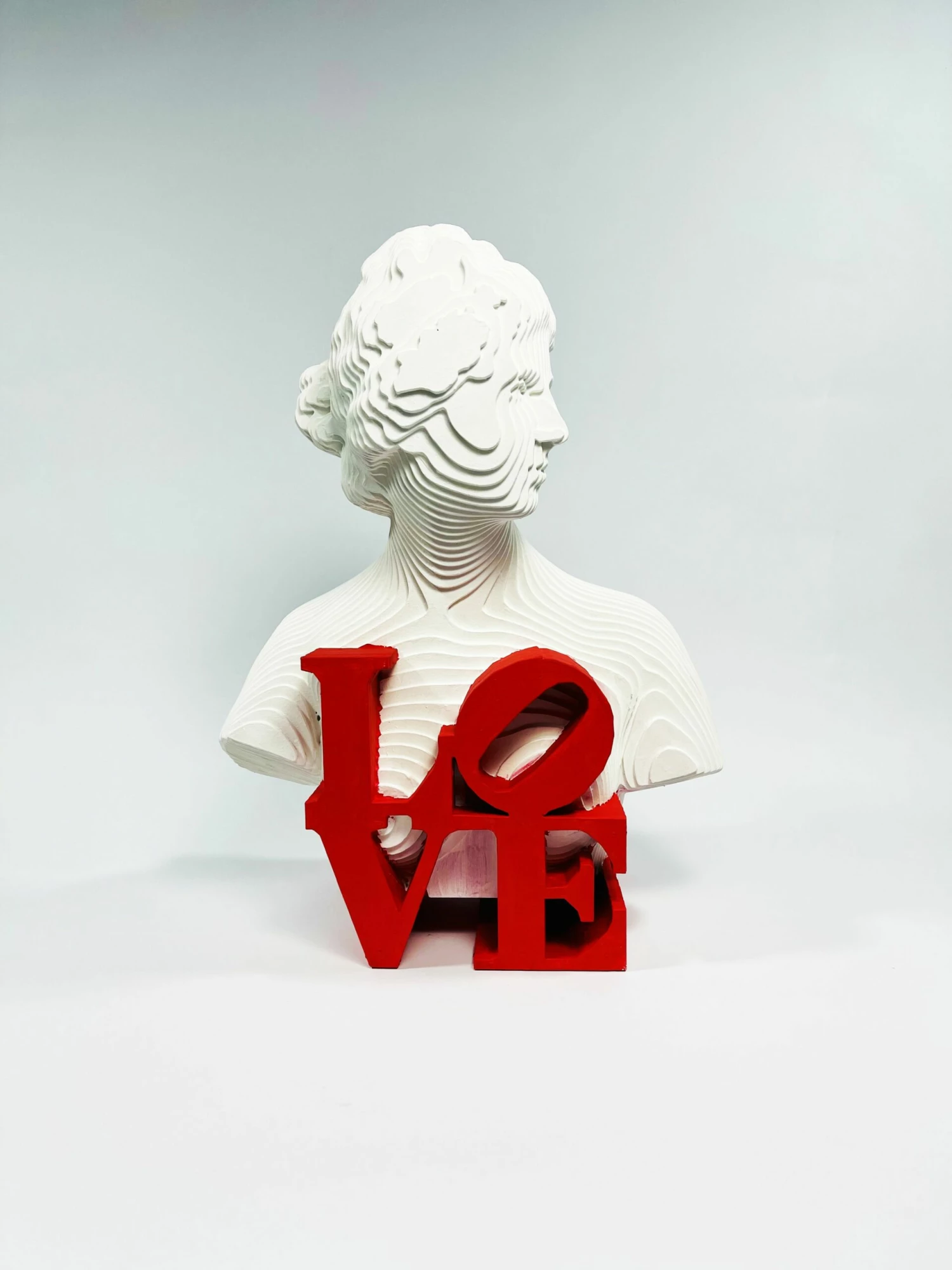 La scultura unica di Daniele Fortuna, Diana Love è un’opera realizzata con legno attraverso una tecnica che accosta più livelli sfalsati, che ricordano quasi una produzione digitale.