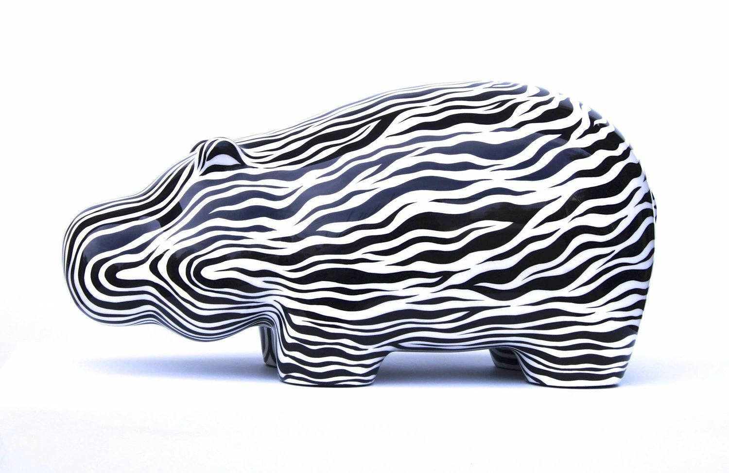 L’iconico ippopotamo Don’t Worry è realizzato in polvere di marmo e resina, creando quindi un materiale molto resistente che rende adatta la scultura anche per gli ambienti esterni. La misura L è più grande e fa risaltare maggiormente i colori e le svariate fantasie che la decorano, rendendola anche perfettamente adatta ai grandi spazi.