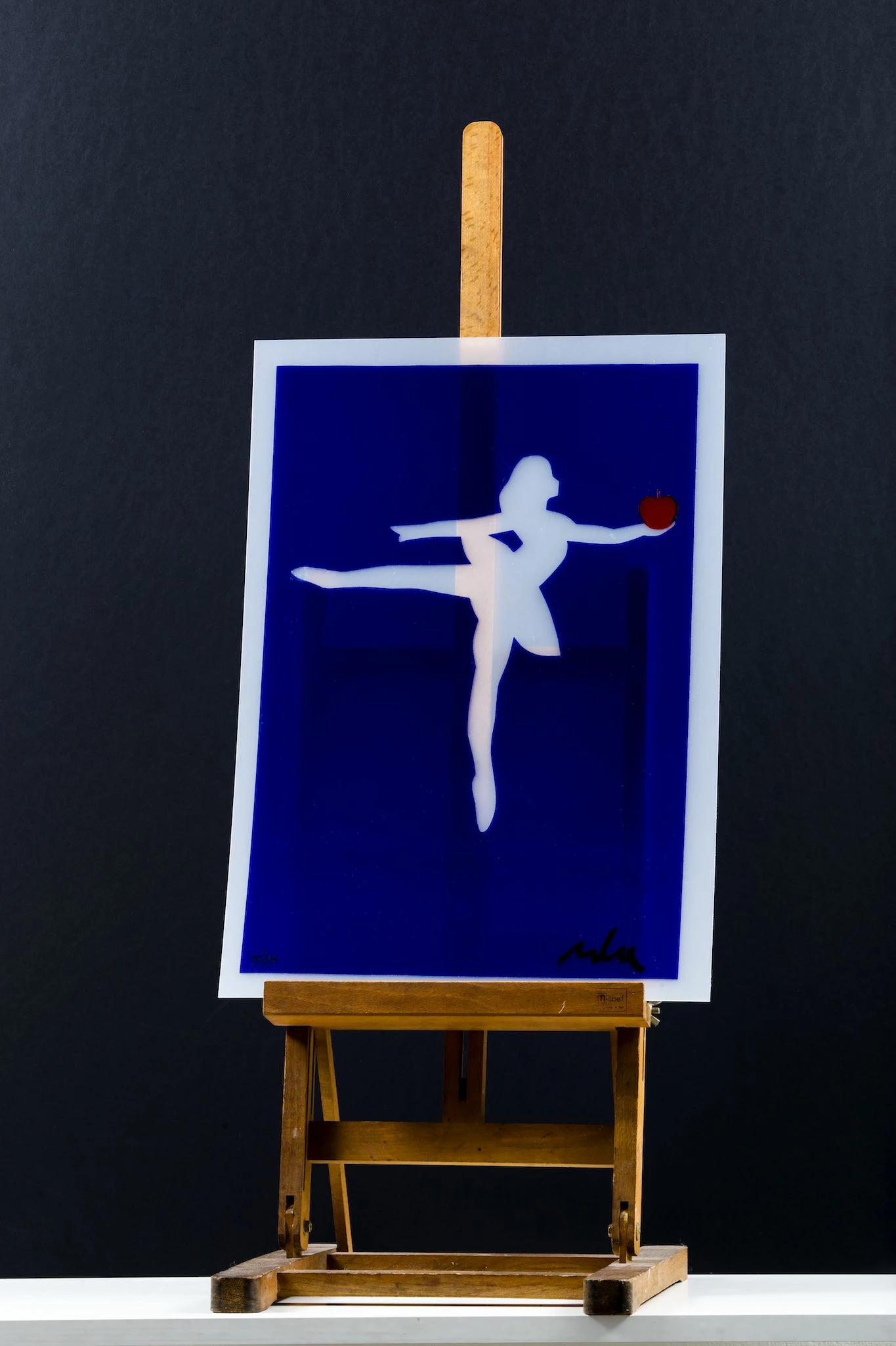 L’opera raffigura la sagoma di una ballerina di danza classica che sorregge in mano la mela, simbolo della cacciata dall’Eden da parte di Dio di Adamo ed Eva. L’uomo e la donna, dopo aver disubbidito e mangiato la mela del peccato, tentati dal serpente, vennero cacciati per sempre dal paradiso. Quest’opera in particolare è tratta dalla scultura esposta sulla facciata dello spazio Mondadori in Piazza Duomo a Milano. il soggetto è ripreso anche in due bellissime sculture luminose, Eden e Mela Verde.