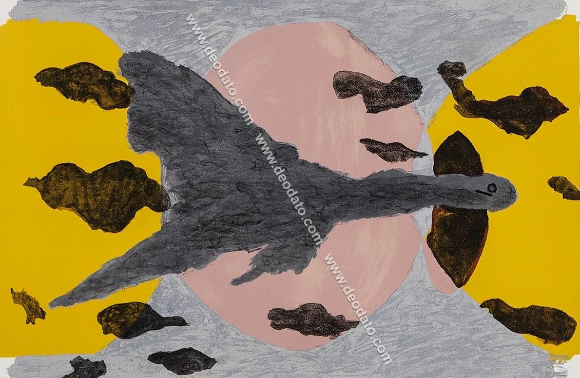 Gli uccelli sono un motivo ricorrente nelle opere di Braque e rappresentano una metafora per la libertà e la pace, specialmente dopo la Seconda Guerra Mondiale. Nell’ultimo periodo della sua vita, l’artista dipinse ripetutamente opere con uccelli, che diventano in questo modo motivi perfetti per esprimere la sua costante ricerca tra spazio e movimento. In questa bellissima litografia su carta, Braque raffigura un uccello mentre vola in un cielo color grigio con tre cerchi: due gialli e uno rosa, i quali rappresenterebbero probabilmente il sole e la luna durante il periodo dell’equinozio, come ci suggerisce il titolo.
