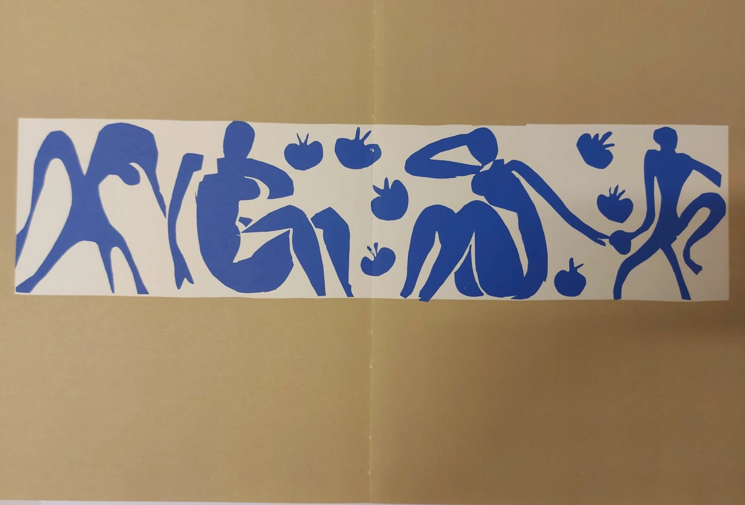 Artista tra i più noti del XX secolo ed esponente del Fauvismo, Henri Matisse accosta colori puri in una profonda ricerca sul colore e sugli stati d’animo che questo può trasmettere. In quest’opera, Matisse riprende i soggetti della celebre serie dei Nudi Blu, realizzati con la tecnica del cut-out: utilizzando ritagli di fogli di carta crea, come ci suggerisce il titolo, forme essenziali di donne e scimmie.