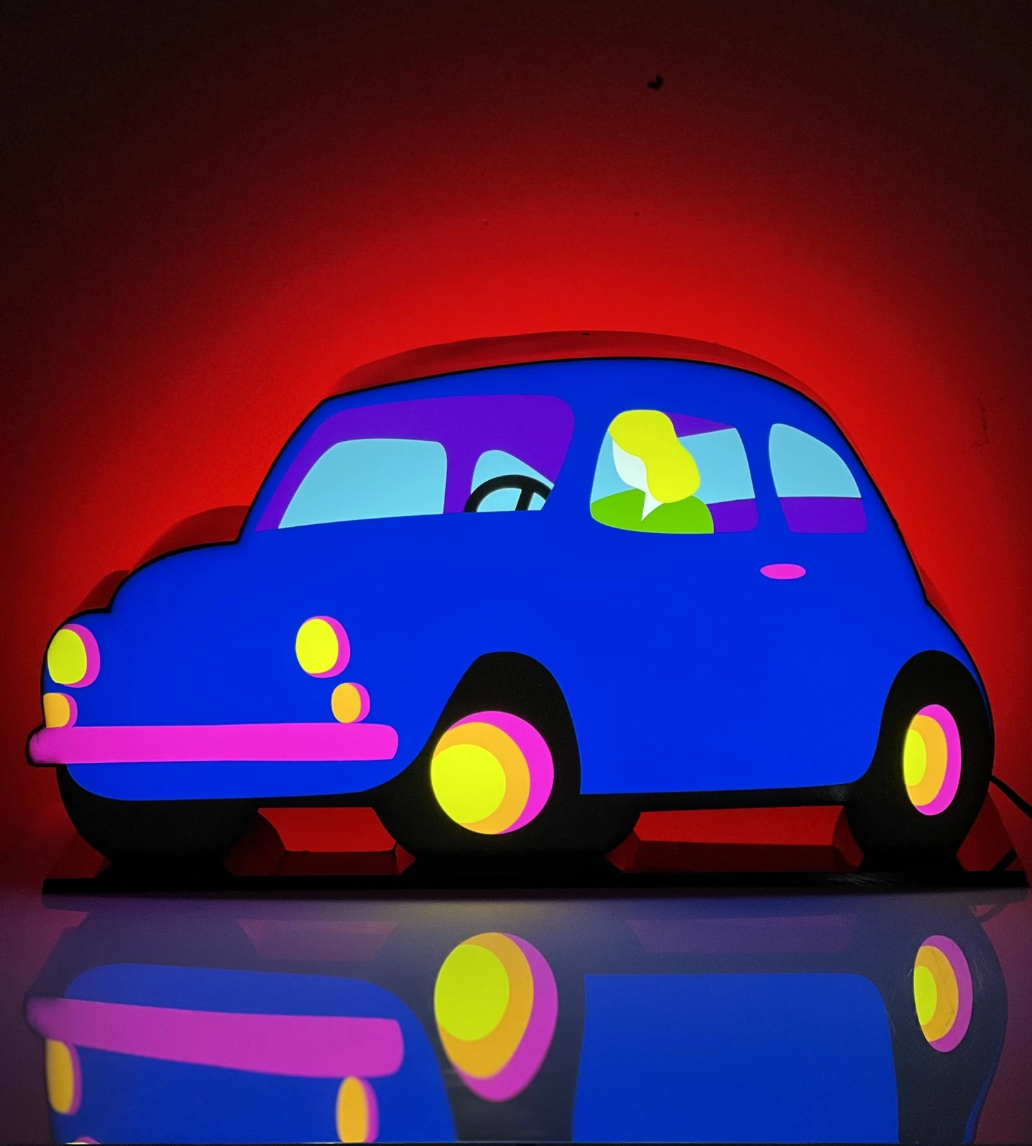 Anche nei soggetti delle macchine, Marco Lodola inserisce coppie di innamorati. Soggetto, questo, che si può oramai considerare come il più iconico di Marco Lodola.