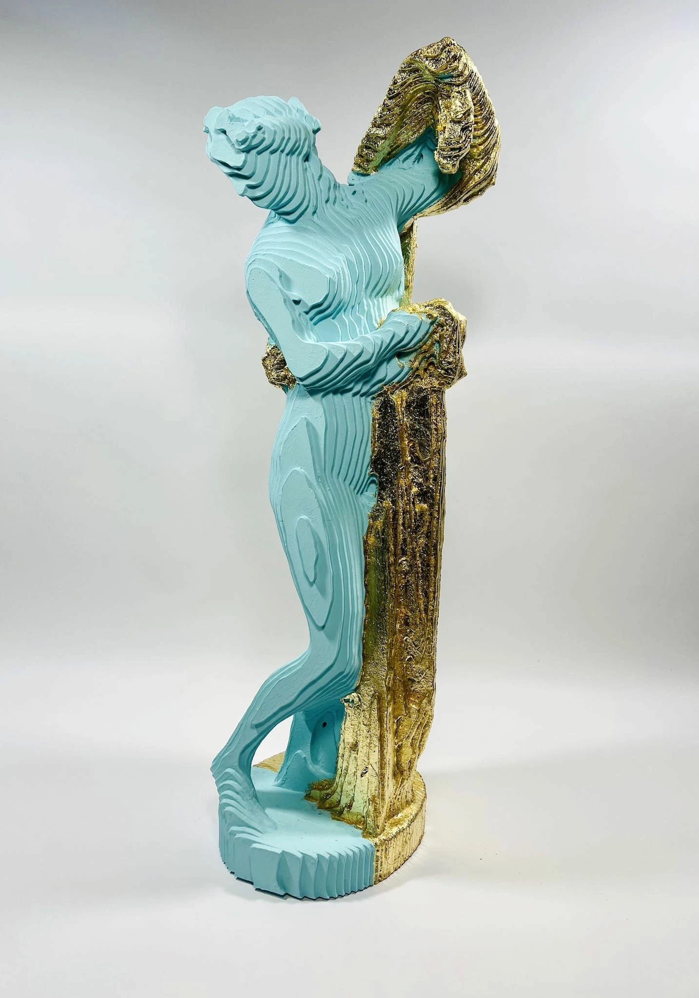 La scultura rappresenta un corpo fortemente ispirato ai canoni classici. Tipica è la fusione tra passato e presente all’interno della stessa opera; infatti, se il corpo riprende la classicità e l’antichità, i colori accesi e brillanti riportano la scultura nella contemporaneità. Le sculture di Fortuna hanno come punto di partenza soggetti classici, busti greco-romani che vengono ricreati in legno.