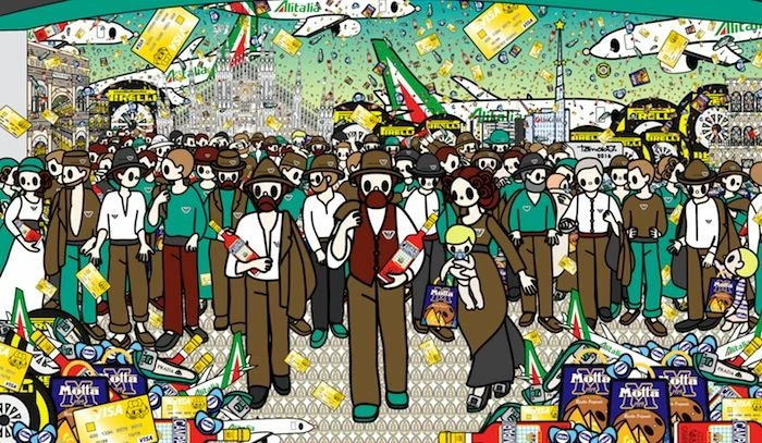 L’opera è ispirata dal capolavoro di Pellizza, oggi esposta al Museo del Novecento a Milano. In questo caso Tomoko rivisita l’opera in chiave pop e kawaii: il popolo-POP avanza, inesorabile, con una bottiglia magnum di Campari in mano. La classe operaia e dei braccianti, “Il quarto stato” oggi veste Armani (fake or original), in un tripudio di brand storici “milanesi” tra i quali il fu “panetùn” panettone Motta. Alle spalle di questa massa di persone, fieramente consumiste, il Duomo di Milano, in versione POP GOTHIC rivisto con un lavoro meticoloso e virtuoso di forme e vettori nel ricostruire anche le statue presenti sulle Guglie con personaggi citazione di molte opere della stessa Tomoko. Nel cielo fluttua anche la Tomoko-Visa card gold, con la quale a Milano “capitale dello shopping” tutto si può!