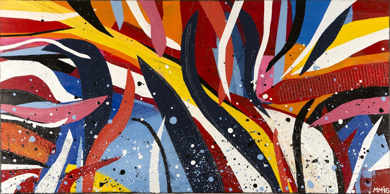 La composizione di forme e linee dona ritmo ed equilibrio alle opere, mentre il colore le carica di energia e diventa il mezzo attraverso cui l’artista esprime emozioni e racconta storie.