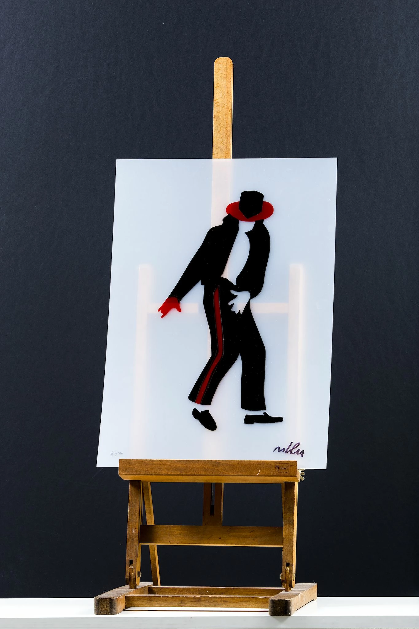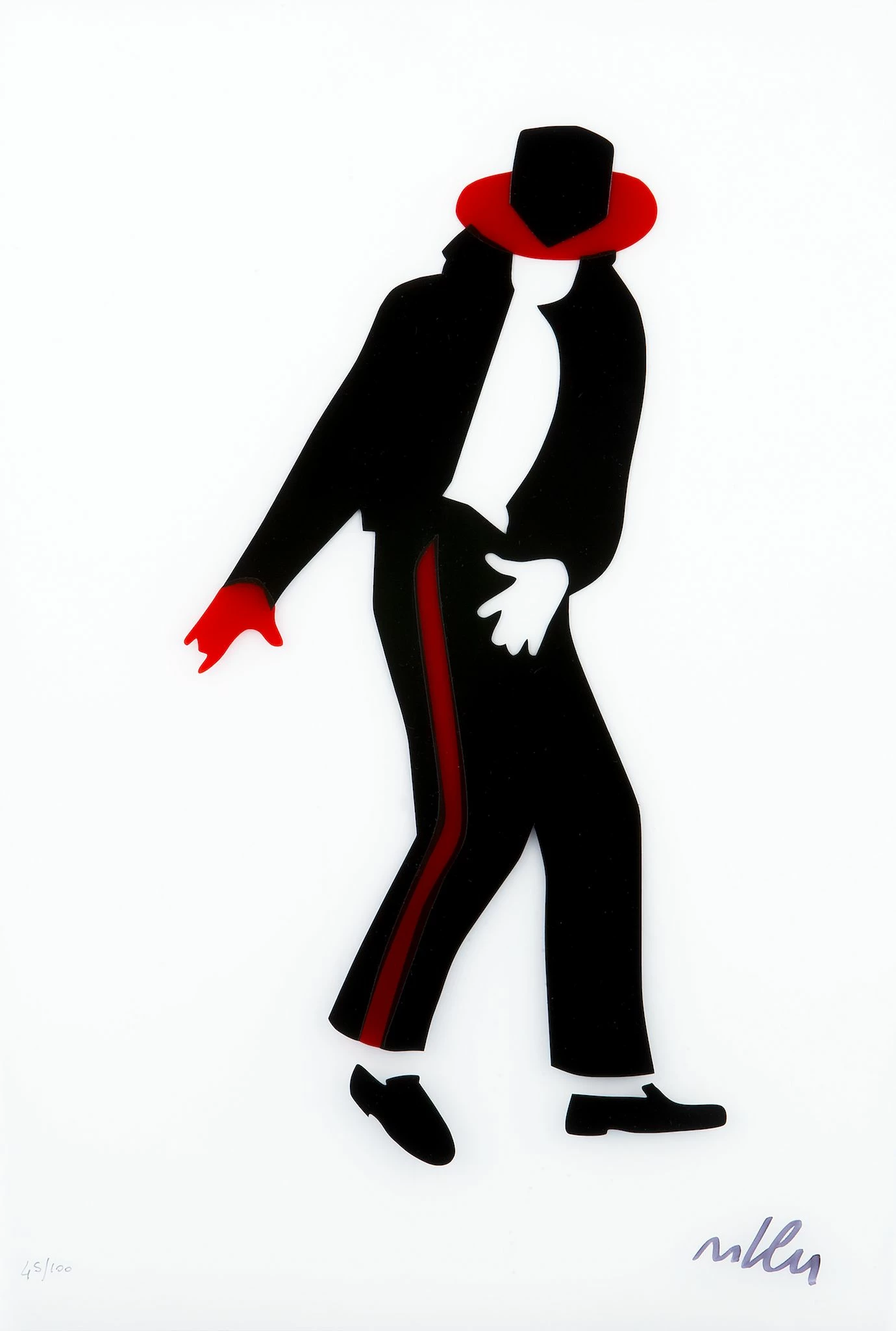 Il sericollage Jacko di Marco Lodola emerge come un’opera distintiva all’interno della collezione “Musica“, raffigurando in modo inconfondibile Michael Jackson, l’indimenticabile icona pop. Marco Lodola cattura la potenza del Re del Pop mentre esegue un memorabile passo di danza, utilizzando colori vibranti e linee dinamiche per immortalare la vitalità e l’energia scatenante di Jackson.