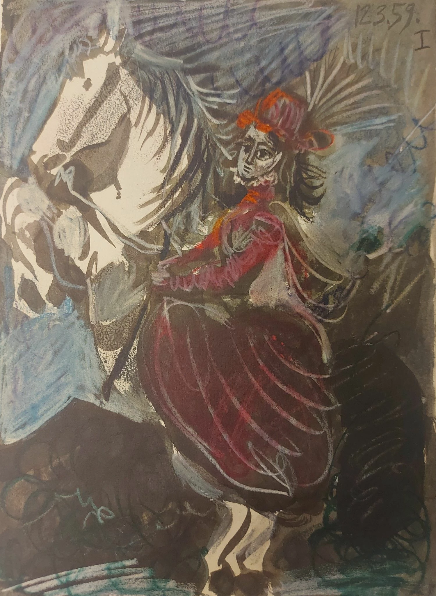 L’opera Jaqueline écuyère I di Pablo Picasso misura 27×37 cm.