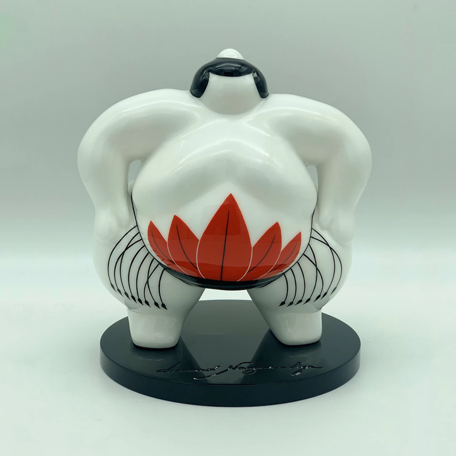 Le sculture di Arnaud Nazare-Aga hanno come scopo quello di portare felicità a chi le guarda. La scelta dei soggetti, le forme, i colori e i materiali sono pensati per creare un’armonia tra lo spettatore e l’opera. La collezione Sumo, una delle più apprezzate dell’artista, è composta da tre sculture, ognuna delle quali richiama una delle posizioni adottate dai combattenti. In questo caso il sumo è rappresentato nella posizione Dojo-Iri, ovvero la posizione di saluto e ringraziamento finale del combattimento. L’opera è realizzata in fibra di vetro, polvere di marmo e resina, dipinta interamente a mano e laccata all’esterno.