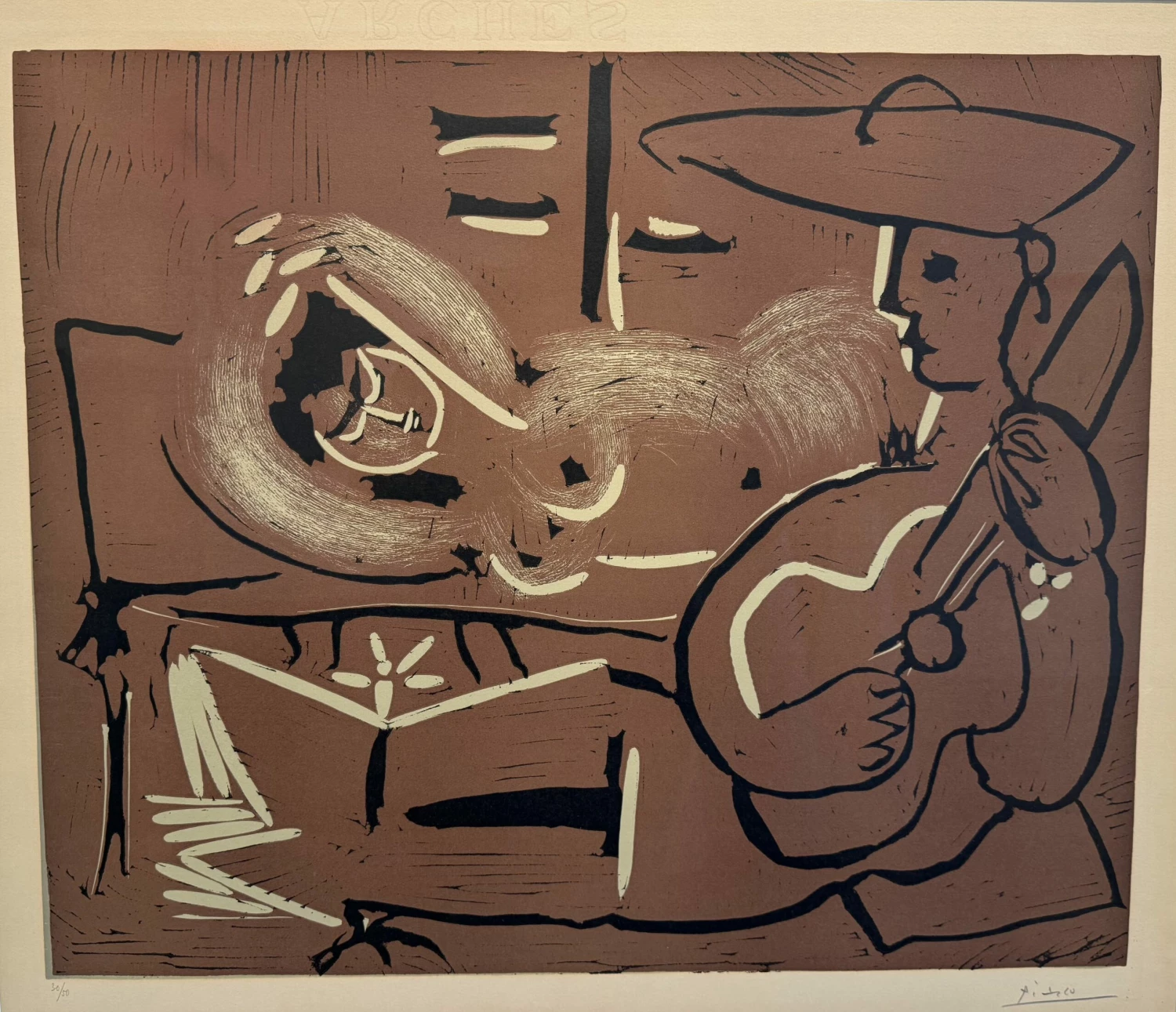 L’opera L’aubade, con il chitarrista fa parte di un’ampia collezione di grafiche artistiche, realizzate con diverse tecniche di incisione. Questa tipologia di opere ha accompagnato tutta la carriera artistica del padre del cubismo, con una produzione che conta oltre 2400 esemplari.
