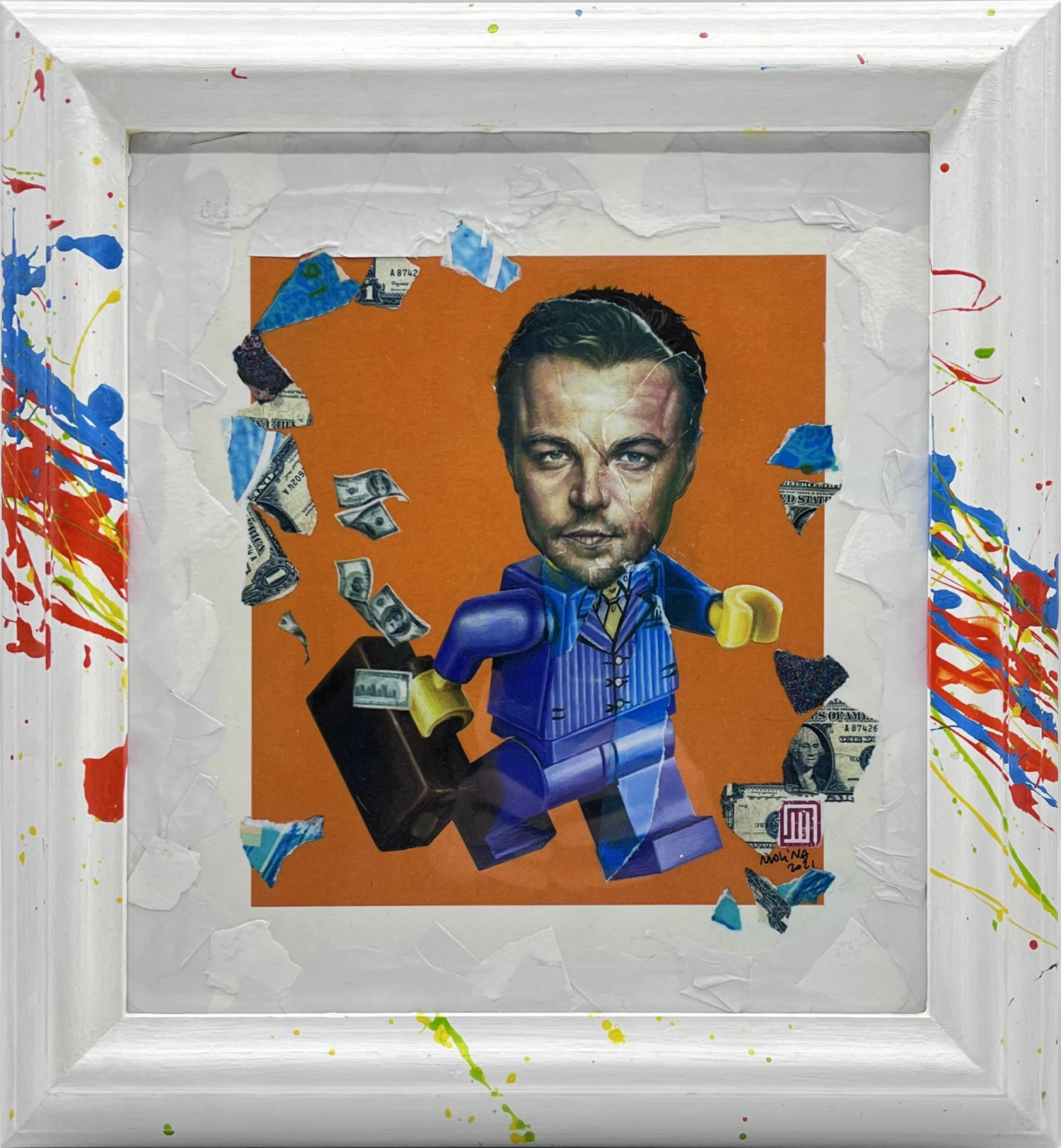 Leo di Caprio è un’opera unica dell’artista José Molina che rappresenta nelle vesti di un personaggio Lego l’attore Leonardo DiCaprio nei panni del protagonista di The Wolf of Wall Street, film del 2013 diretto da Martin Scorsese.