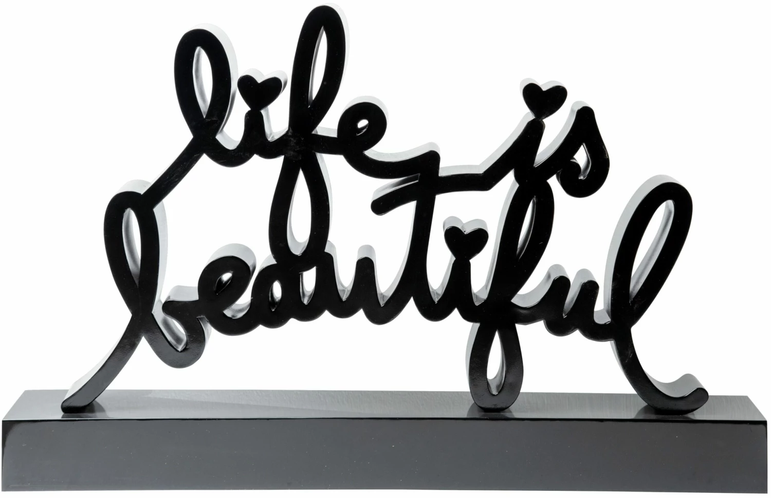 L’opera di Mr. Brainwash Life Is Beautiful – Black dà forma al celebre motto dello street artist “Life Is Beautiful” in una scultura in acciaio zincato dipinta con vernice cromata di colore nero.
