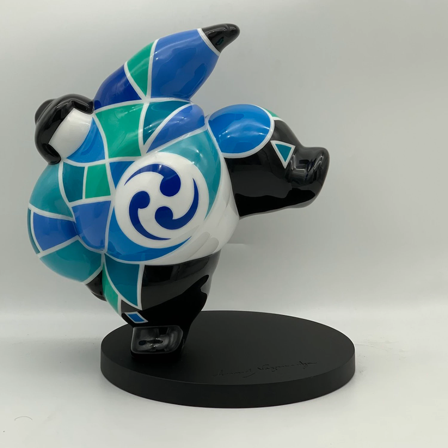 L’artista, nella sua produzione artistica, tratta sculture di svariate dimensioni, con linee sinuose e dai colori sgargianti. Queste sculture dalle forme dolci, lisce e colorate, hanno il compito di infondere gioia ed elevare l’umore di tutti coloro che le osservano.