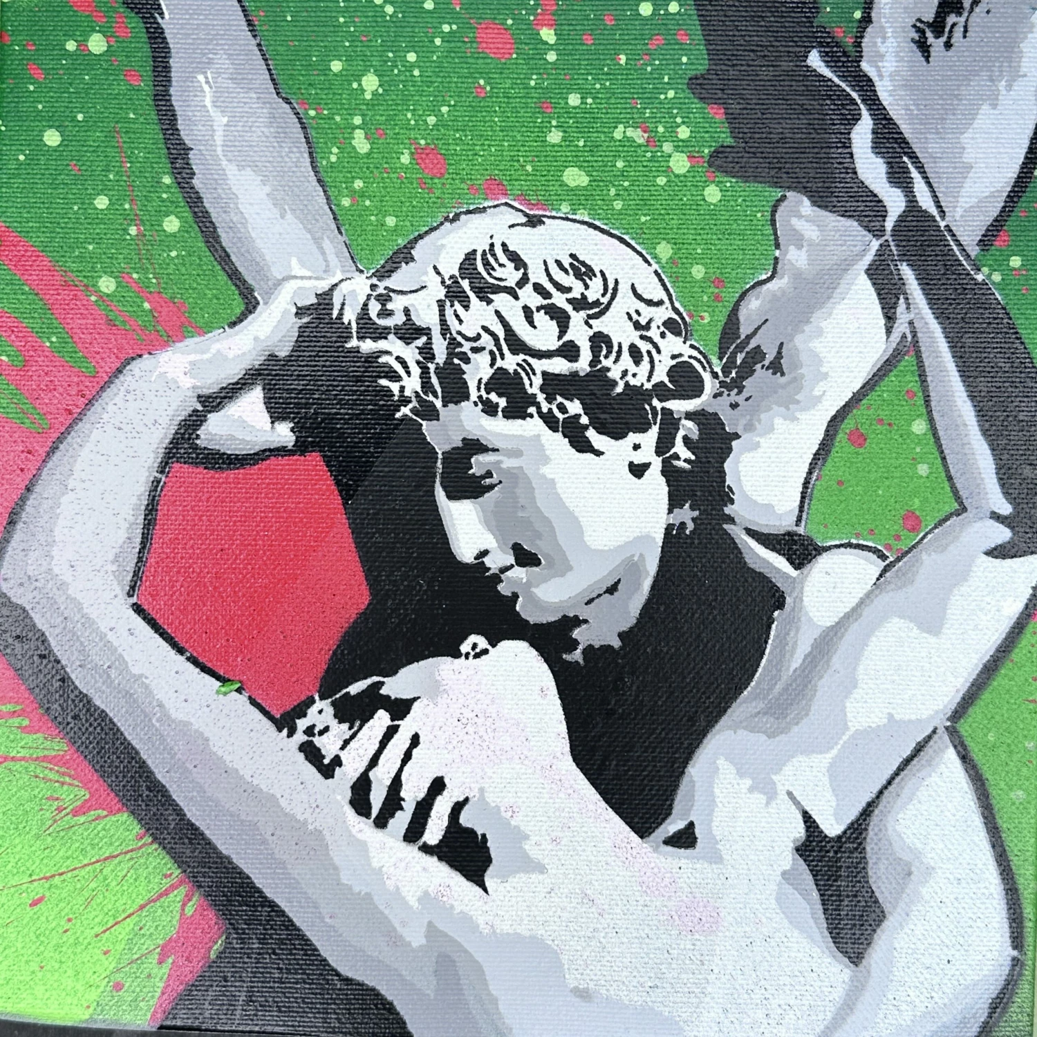 Un’altra delle opere più riconoscibili di Mr. Savethewall è la rivisitazione della famosa scultura del maestro Canova, Amore e Psiche.