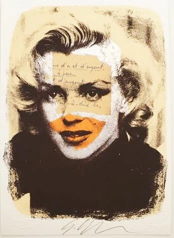 Giuliano Grittini interviene manualmente sulle stampe che crea nella sua stamperia, sovrapponendo pezzi di carta, aggiungendo glitter e scritte. Utilizza icone riconoscibili e le personalizza con la sua azione artistica. La sua musa dall’eccezionale bellezza è da sempre Marilyn Monroe. In quest’opera magnifica il colore simboleggia le sofferenze che la diva ha attraversato durante la sua breve vita. Da sempre Grittini coniuga l’arte figurativa a quella poetica. Nelle sue opere, infatti, si trovano spesso frasi poetiche incise o scritte a mano dall’artista su carta antica.