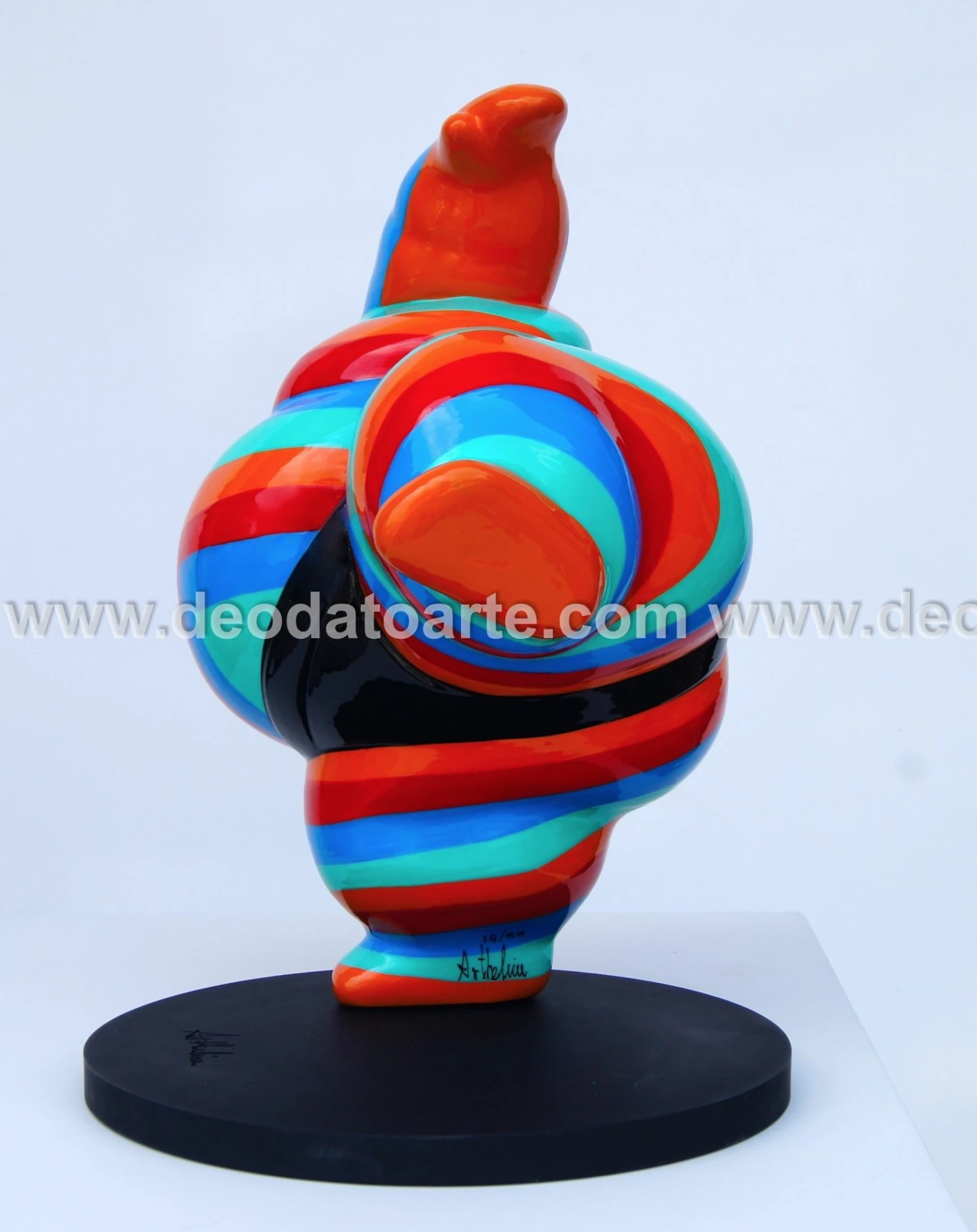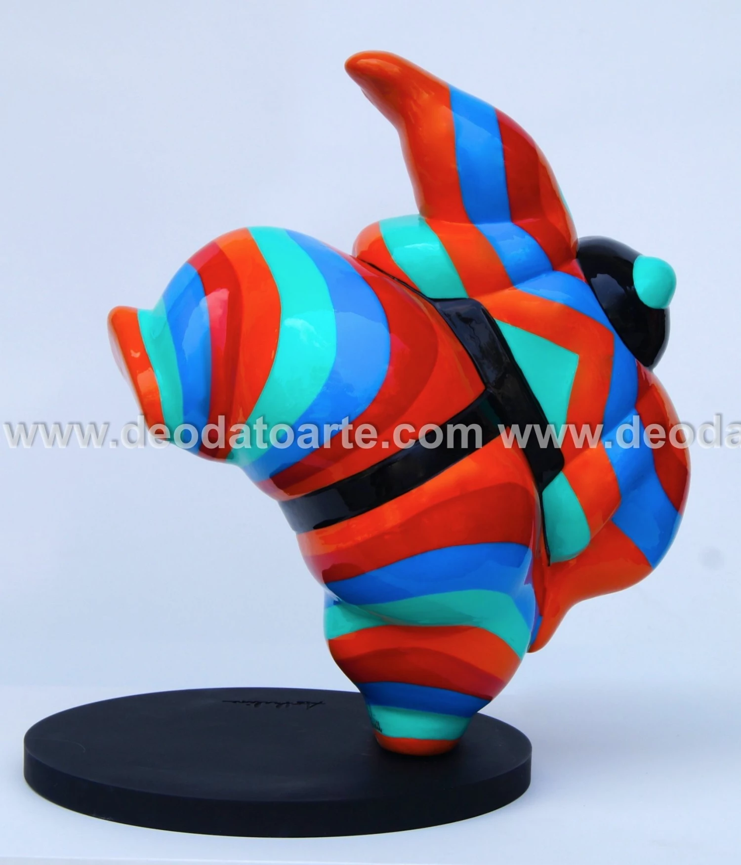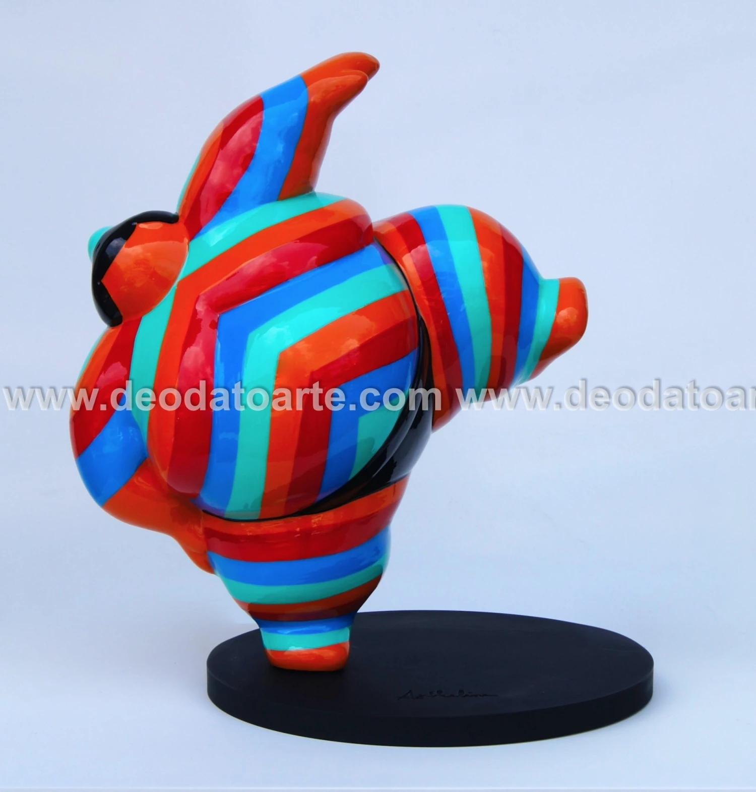 L’artista, nella sua produzione artistica, tratta sculture di svariate dimensioni, con linee sinuose e dai colori sgargianti. Queste sculture dalle forme dolci, lisce e colorate, hanno il compito di infondere gioia ed elevare l’umore di tutti coloro che le osservano.