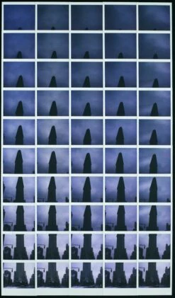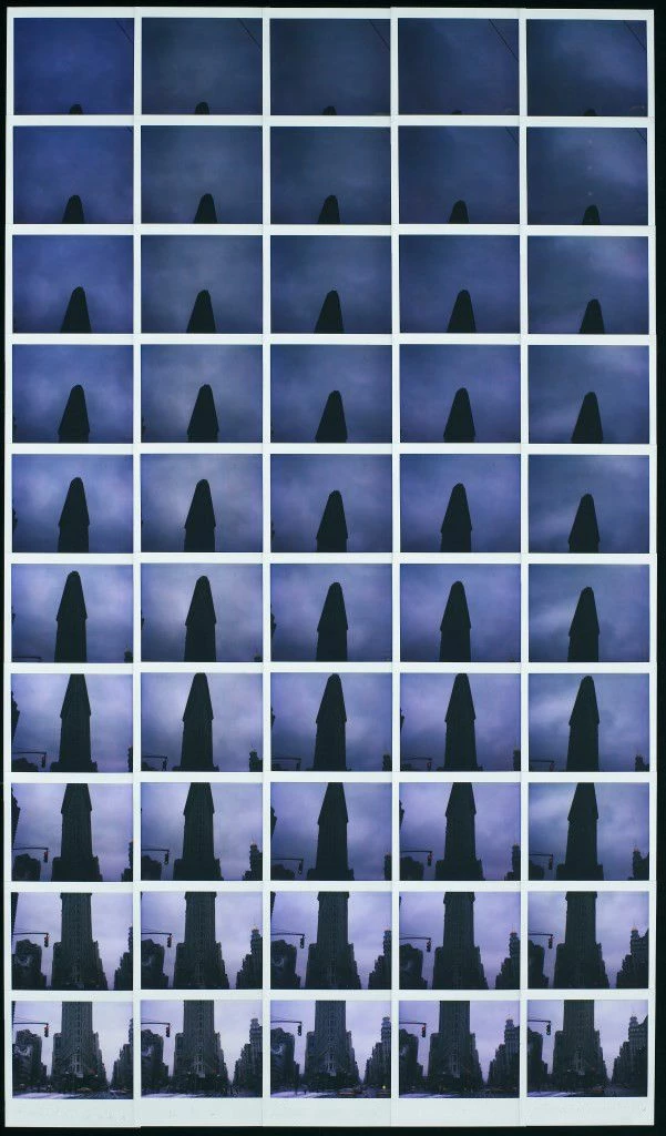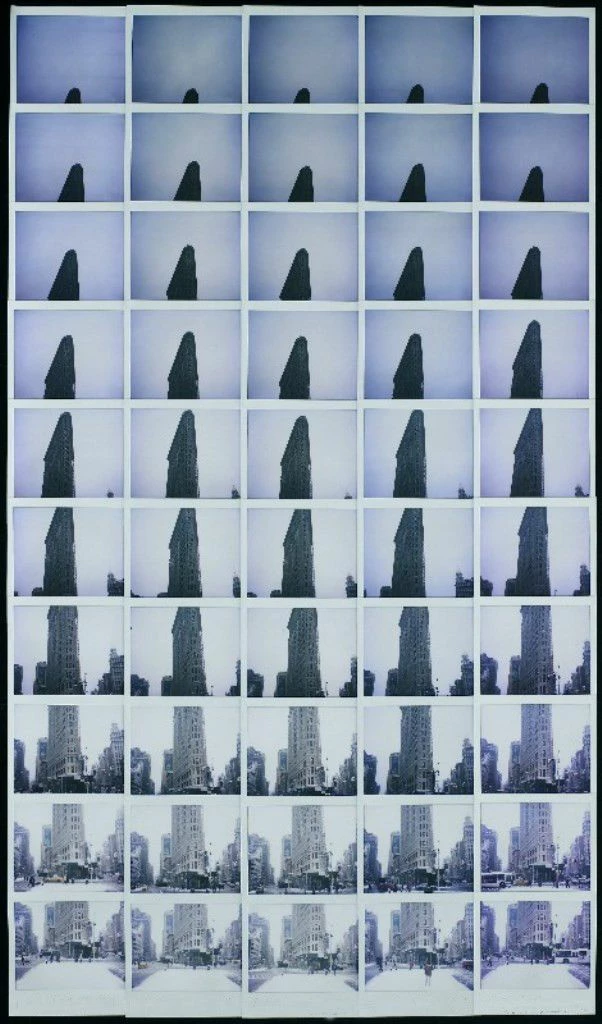 Maurizio Galimberti ci offre una panoramica della città di New York, attraverso il progetto Flat Iron, realizzando una serie di mosaici di Polaroid con soggetto il famoso Flatiron Building sulla 5th Ave ripreso da varie angolazioni e prospettive. Da questi mosaici, che sono pezzi unici, ricava cinque stampe lambda da ognuno. Questa in particolare è la n°1/5 derivante dall’originale New York Flat n°1 del 22/2/2008. In questa stampa, le immagini sono divise in colonne alternativamente sui toni del viola chiaro e del viola scuro.