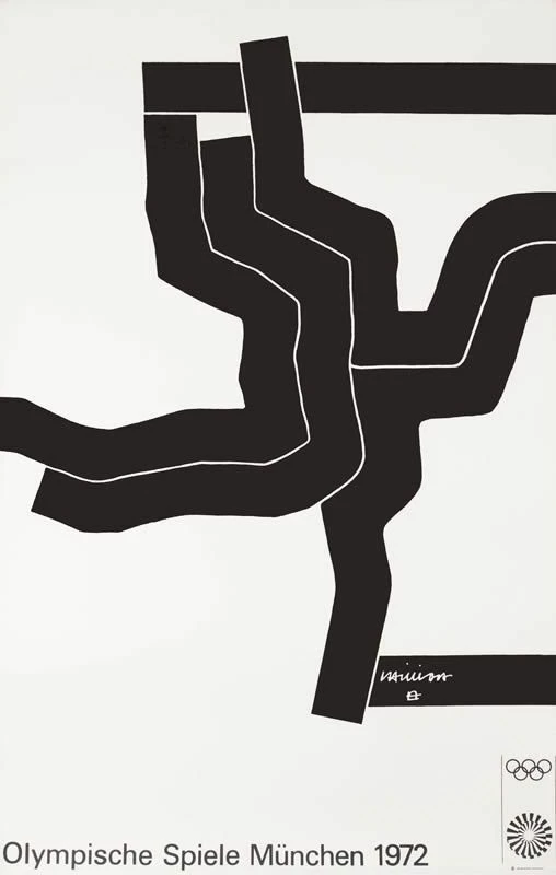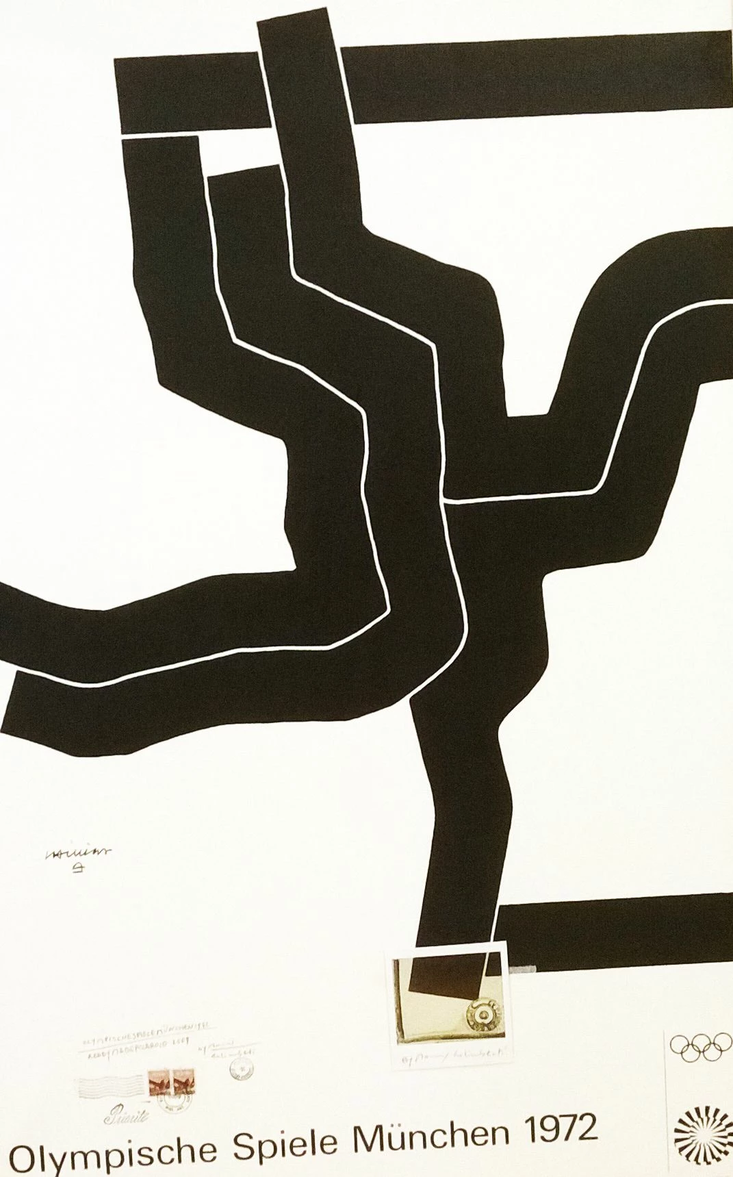 Questa opera di Maurizio Galimberti è un pezzo unico realizzato ritoccando un manifesto originale realizzato da Eduardo Chillida. Quest’ultimo, scultore spagnolo dalle forti influenze architettoniche. In questa opera per le Olimpiadi di Monaco 1972 i suoi studi di architettura sono molto evidenti. La possenza del materiale edilizio viene riportato sul poster. L’artista Galimberti interviene, in questa serie di opere, sovrapponendo all’immagine originale delle polaroid, in questo caso una, con dettagli stessi dell’originale.