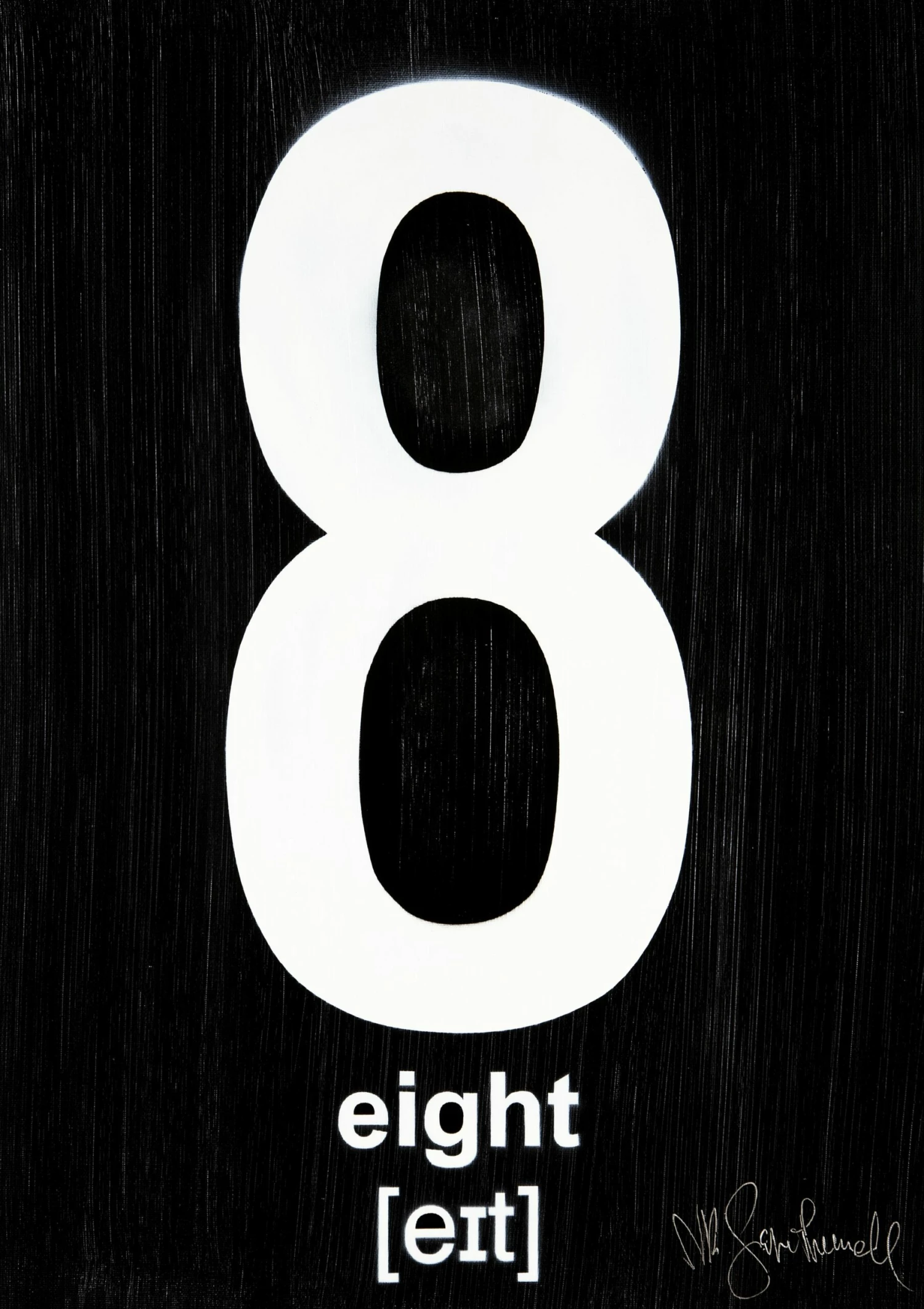 Fa parte della serie International Language in cui l’artista rappresenta nella stessa tela immagine visiva e fonetica. L’utilizzo del bianco e nero rende il messaggio ancora più definito ed essenziale.