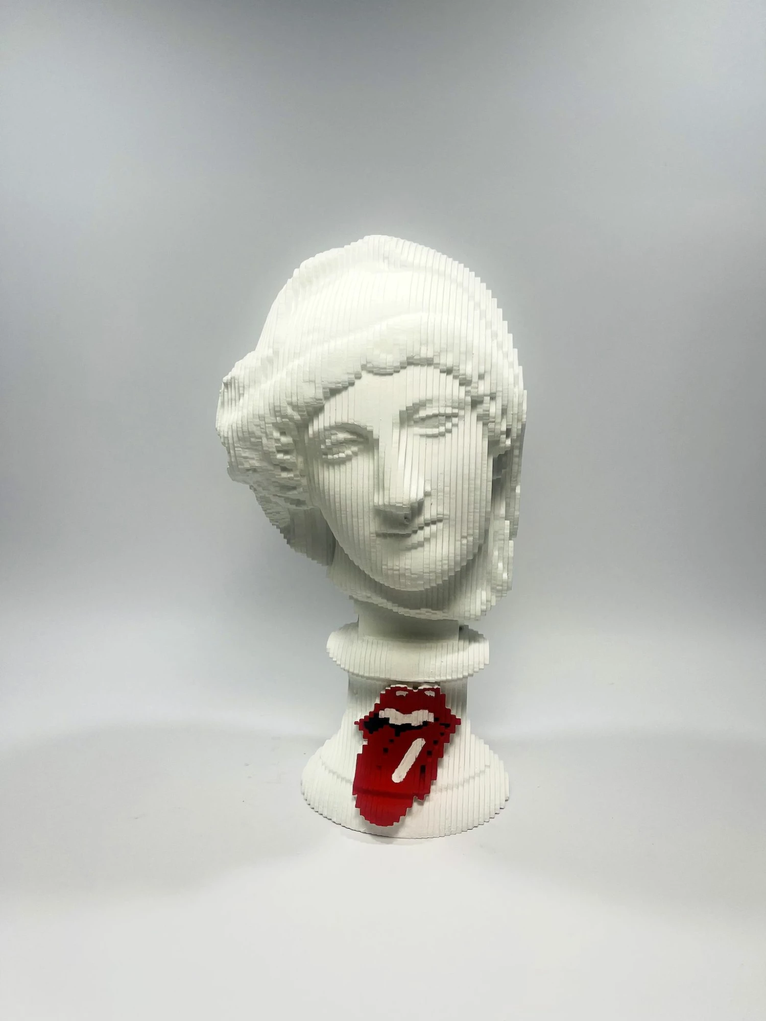 La scultura unica di Daniele Fortuna, Penelope Rock N Roll è stata realizzata in legno con la tecnica tipica dell’artista che accosta più livelli sfalsati, i quali ricordano una produzione digitale.