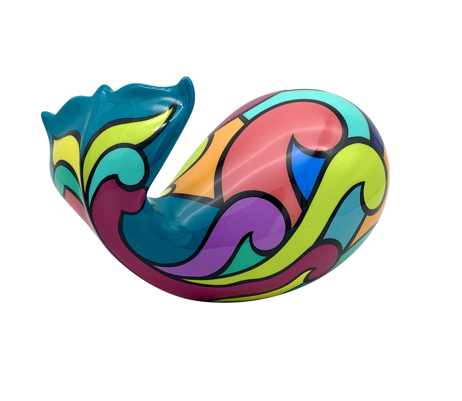 Provvista di certificato di autenticità, Rolling Blue – Whale Pop è nella misura S (base 15,5 cm; altezza 16 cm), perfetta per valorizzare spazi di dimensioni ridotte. E’ riprodotta in edizione limitata di 50 esemplari al mondo, firmata e numerata in originale dall’artista.