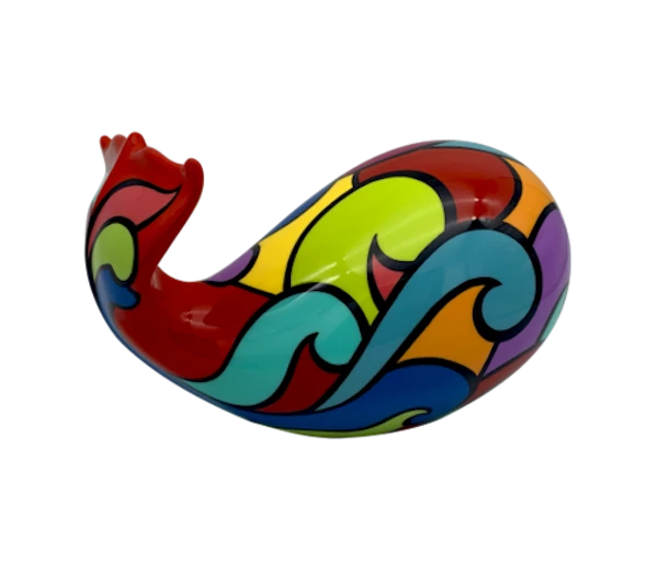 Dalle forme morbide e arrotondate tipiche di Arnaud, l’opera rappresenta una balena, caratterizzata da colori accesi e vivaci.