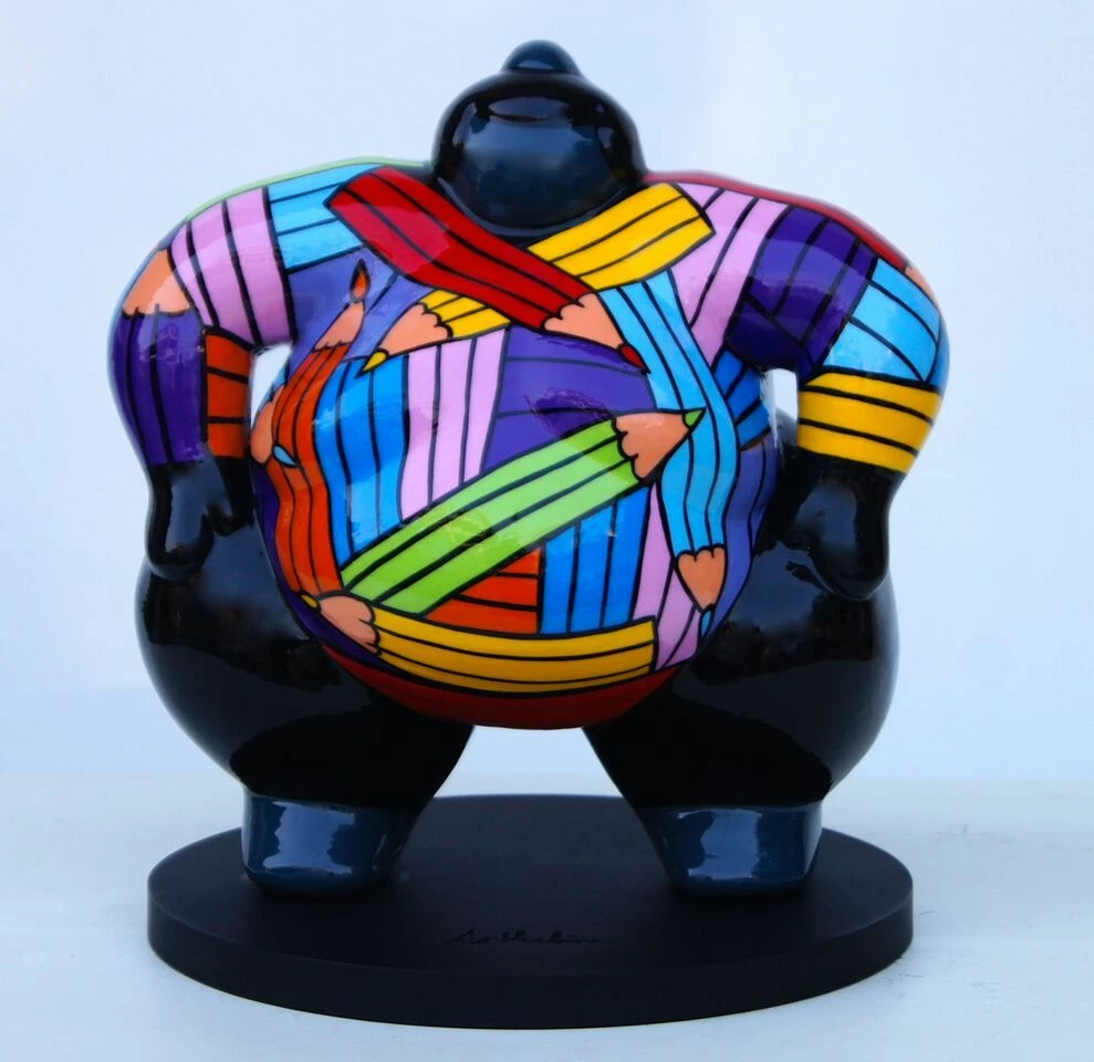 L’artista, nella sua produzione artistica, tratta sculture di svariate dimensioni, con linee sinuose e dai colori sgargianti. Queste sculture dalle forme dolci, lisce e colorate, hanno il compito di infondere gioia ed elevare l’umore di tutti coloro che le osservano.