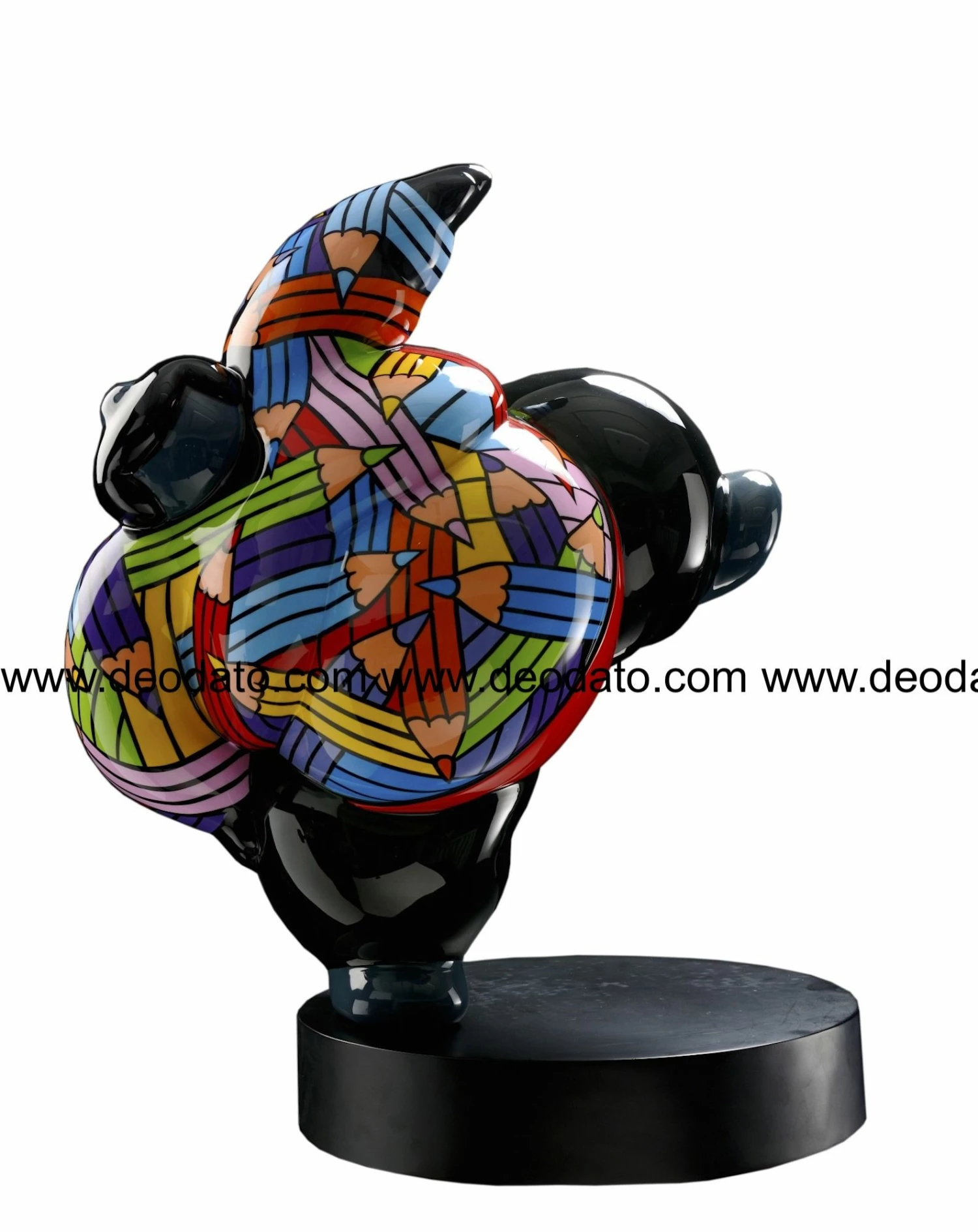 L’artista, nella sua produzione artistica, tratta sculture di svariate dimensioni, con linee sinuose e dai colori sgargianti. Queste sculture dalle forme dolci, lisce e colorate, hanno il compito di infondere gioia ed elevare l’umore di tutti coloro che le osservano.