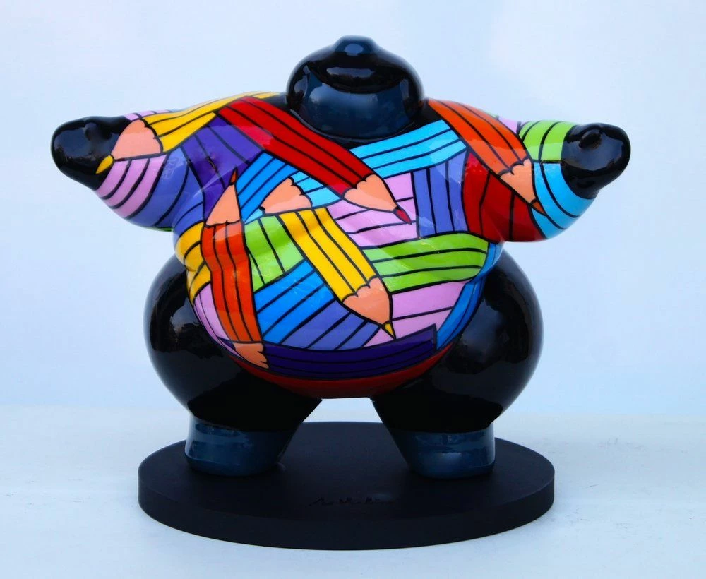 L’artista, nella sua produzione artistica, tratta sculture di svariate dimensioni, con linee sinuose e dai colori sgargianti. Queste sculture dalle forme dolci, lisce e colorate, hanno il compito di infondere gioia ed elevare l’umore di tutti coloro che le osservano.