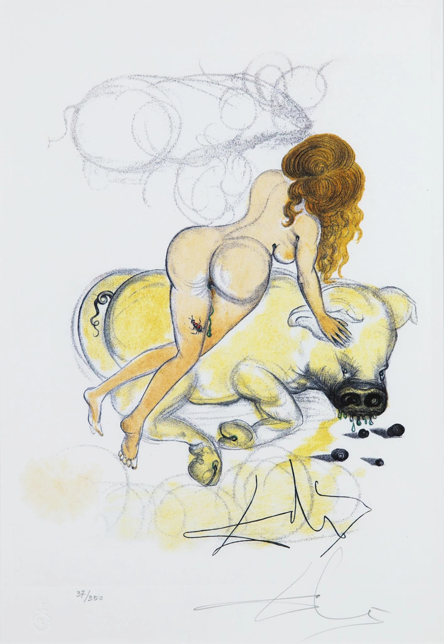 Splendida incisione calcografica a colori realizzata per il libro “Salvador Dalì llustra Casanova”, edito nel 1980. Attraverso 13 incisioni, l’artista catalano surrealista rappresenta alcuni episodi tratti da “Memoires” di Giacomo Casanova, poeta, scrittore e avventuriero veneto del Settecento.