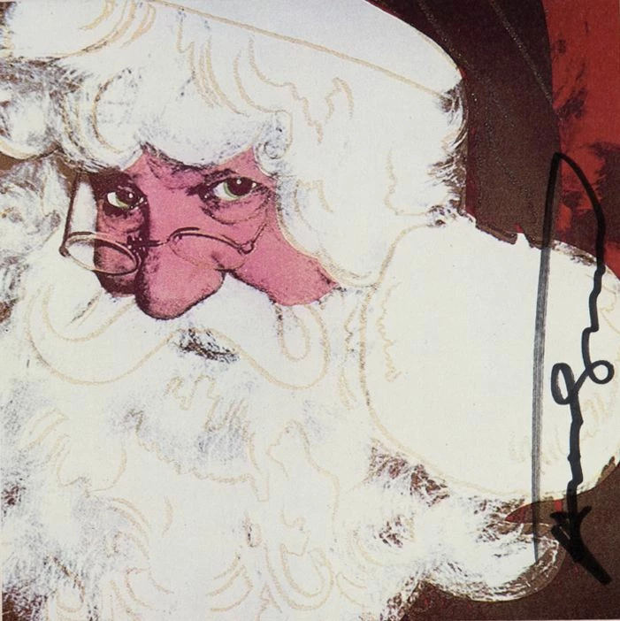 Il soggetto di questa card, realizzata appunto mediante serigrafia, è Santa Claus, celebre personaggio della cultura popolare. L’opera appartiene al portfolio “Miti”, ideato dall’artista e comprendente diverse opere con soggetti, appunto, “mitici”. Infatti, nel dedicarsi a questo portfolio, Warhol si concentrò su icone e simboli della cultura di massa, ritraendo figure come Babbo Natale, Micky Mouse e Dracula. Sulla destra dell’opera compare, in nero, la firma di Andy Warhol.