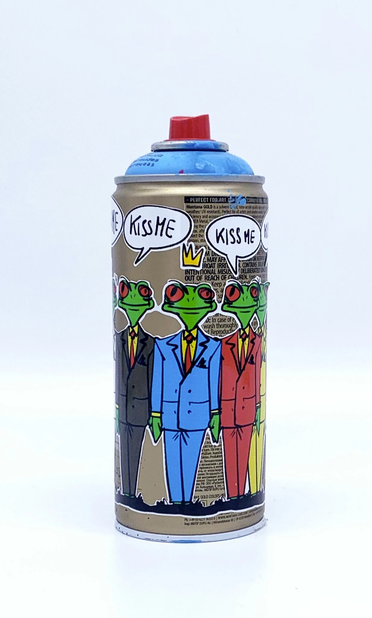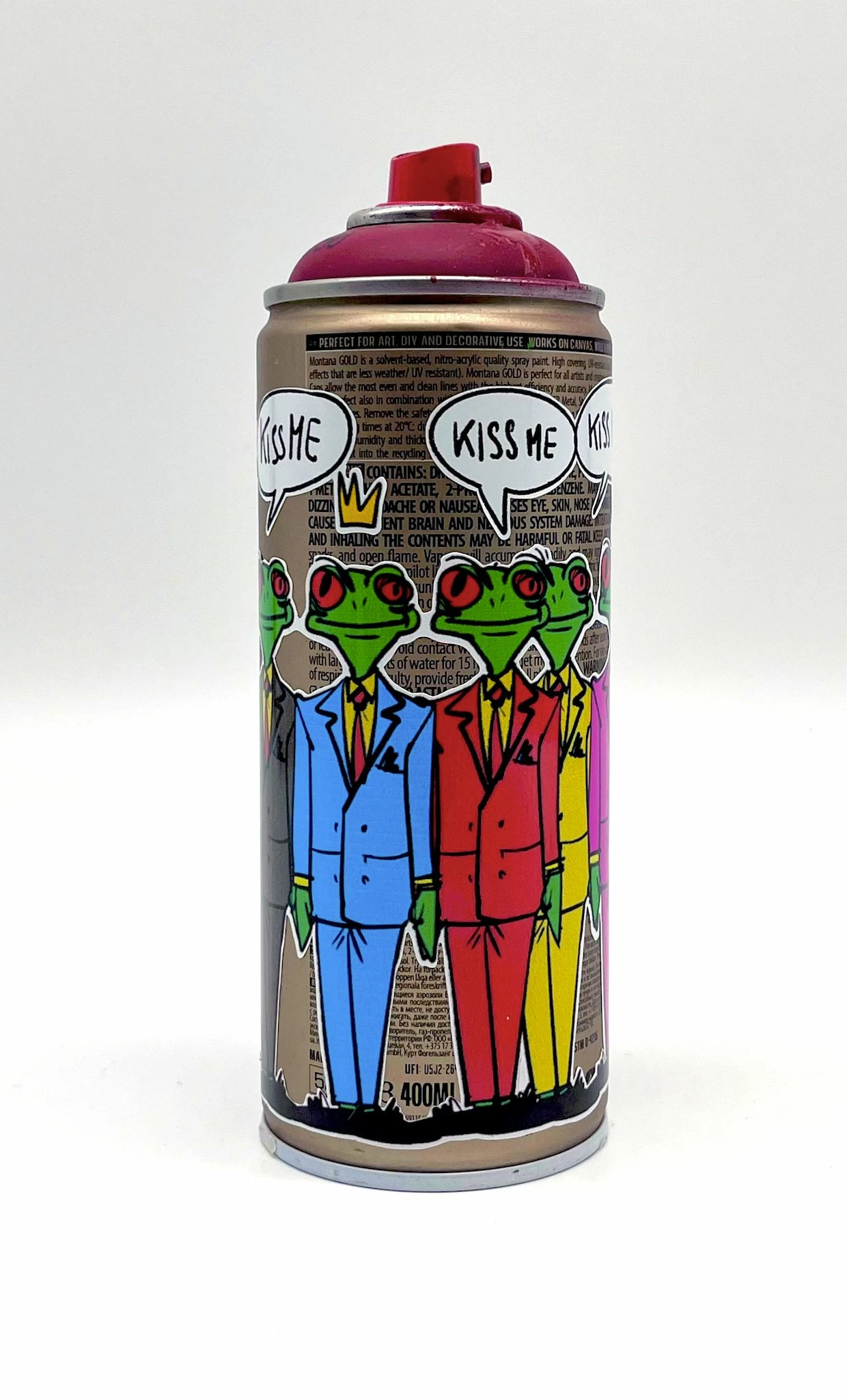 Ogni bomboletta è un pezzo unico firmato dall’artista. Impronte, colature di vernice e altri dettagli rendono ciascun esemplare autentico, testimone del processo artistico. Solo le bombolette utilizzate dall’artista vengono personalizzate e rielaborate: la disponibilità è estremamente limitata!