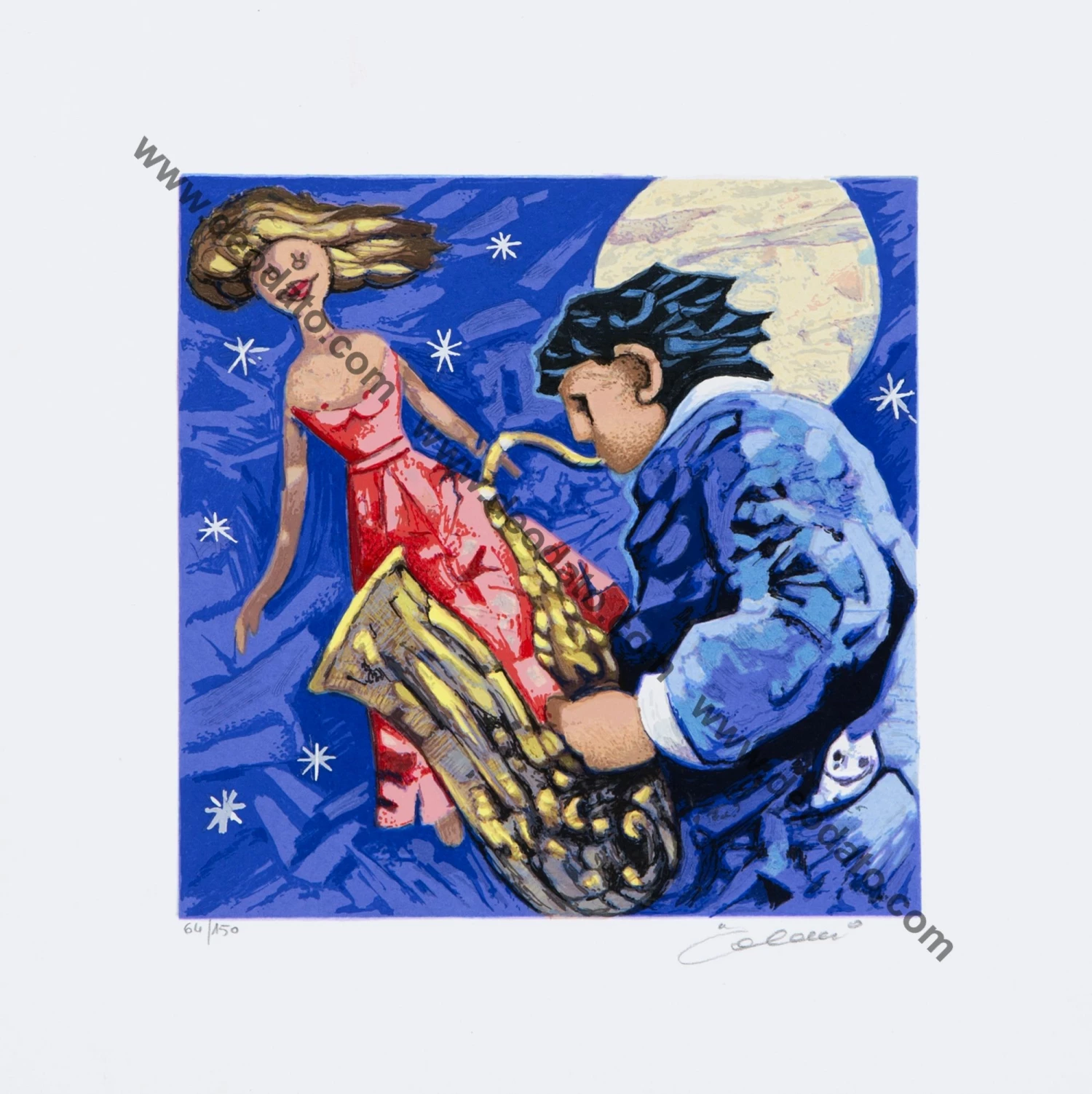 L’opera raffigura un uomo che suona una serenata con il sax al chiaro di luna alla donna che sorride e fluttua nella notte stellata.