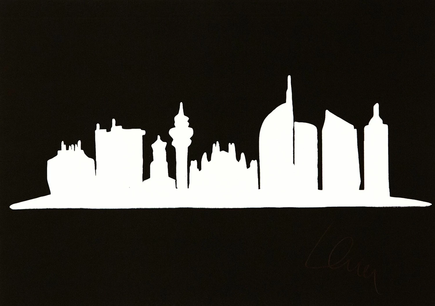 Marco Lodola, Skyline Milano – Serigrafia Firmata in Bianco e Nero, 2019