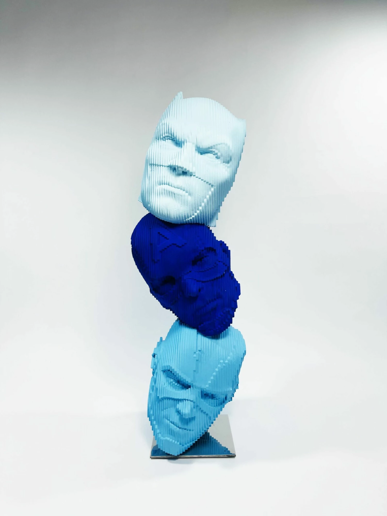 La scultura riprende dei volti che hanno elementi tipici delle sculture sia dell’antichità e della contemporaneità. La scelta di riprendere dei volti che rispecchiano i canoni estetici del passato ma dipinti con colori luminosi caratterizza la produzione artistica di Daniele Fortuna, il quale vuole contaminare le sue opere fortemente ispirate ai grandi classici del passato attraverso l’utilizzo di colori brillanti e luminosi.