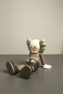KAWS Taipei Holiday Companion (Brown) è una versione in vinile dell’iconico personaggio dell’artista KAWS Companion qui seduto appoggiato sulle braccia.