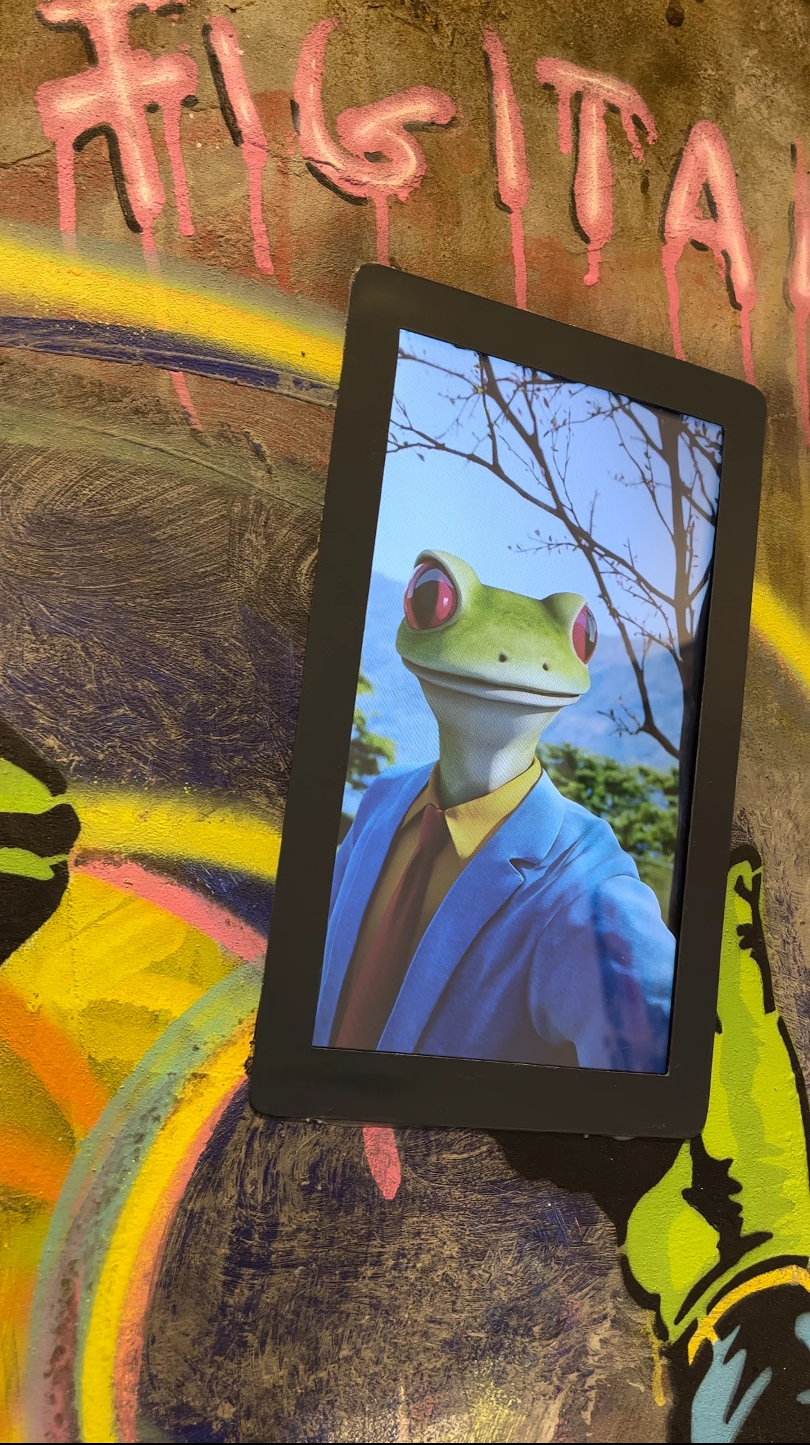All’interno del monitor potrai fruire degli NFT acquistati sulla nuova piattaforma Deodato.io. Ma niente paura, se non vuoi acquistare l’NFT potrai comunque disporre dell’opera fisica e sul monitor potrai vedere un’immagine statica realizzata dall’artista stesso!