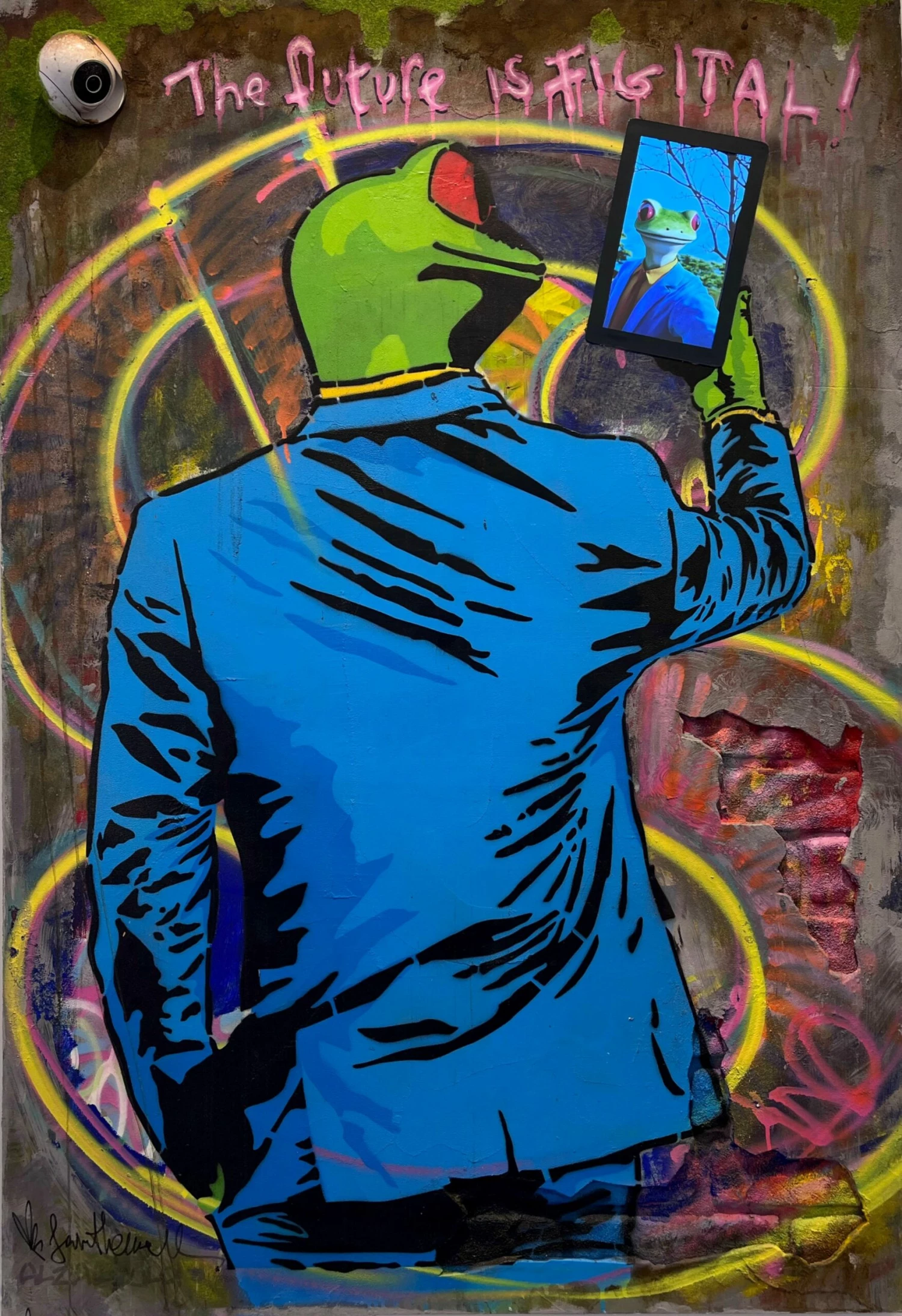 L’opera di Mr. Savethewall, The Future is Figital fa parte del primo drop di Phygital Wallsaved realizzato per il lancio dei 3 NFT su deodato.io.