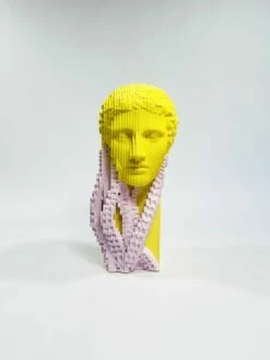 Le sculture di Daniele Fortuna sono realizzate in legno dipinto con pittura acrilica, unendo così l’aspetto plastico, materiale del legno con il colore, elemento chiave dell’estetica dell’artista. Nasce da qui il termine “colormination”, neologismo per indicare la contaminazione cromatica di busti classici che avviene nella sua arte. La parola deriva da “domination”, un termine forte, ma unito al colore che ne rinnova il significato.