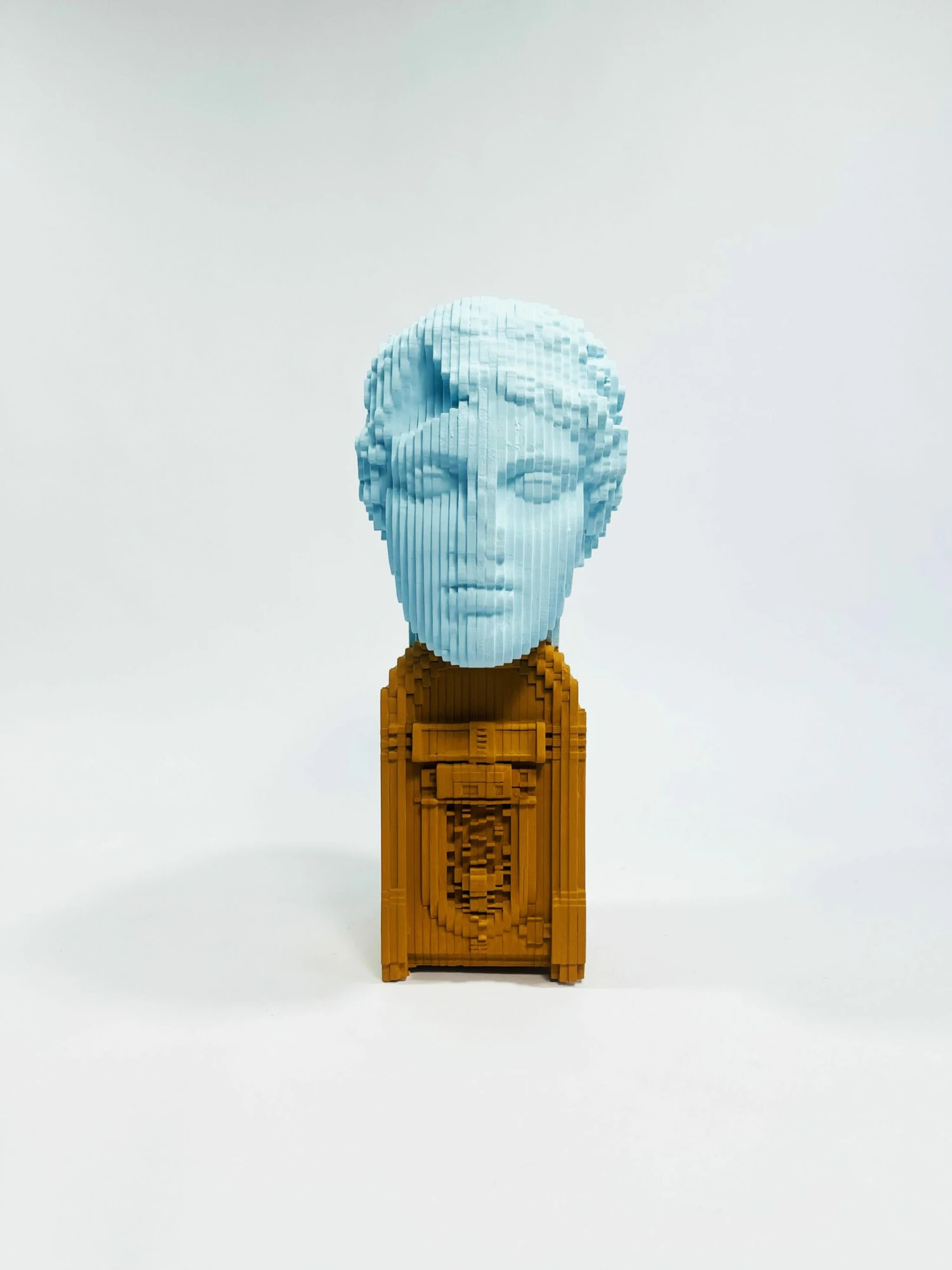 Le sculture di Fortuna hanno come punto di partenza soggetti classici, busti greco-romani che vengono ricreati in legno, con una tecnica che accosta più livelli sfalsati, ricordando quasi una riproduzione digitale.